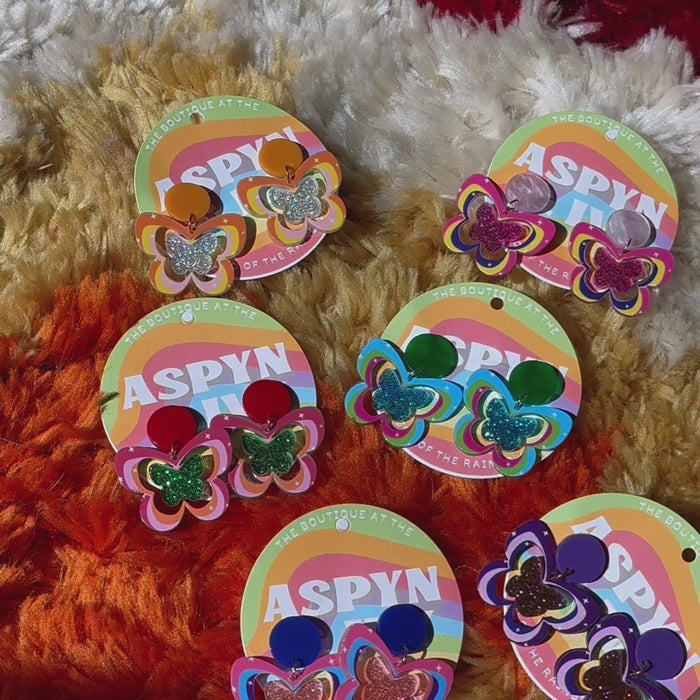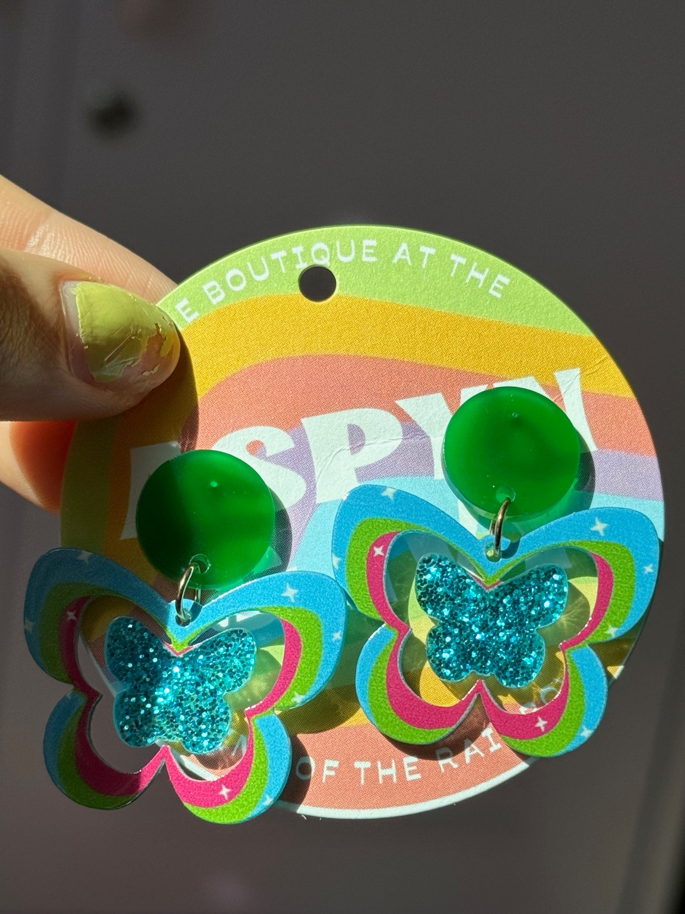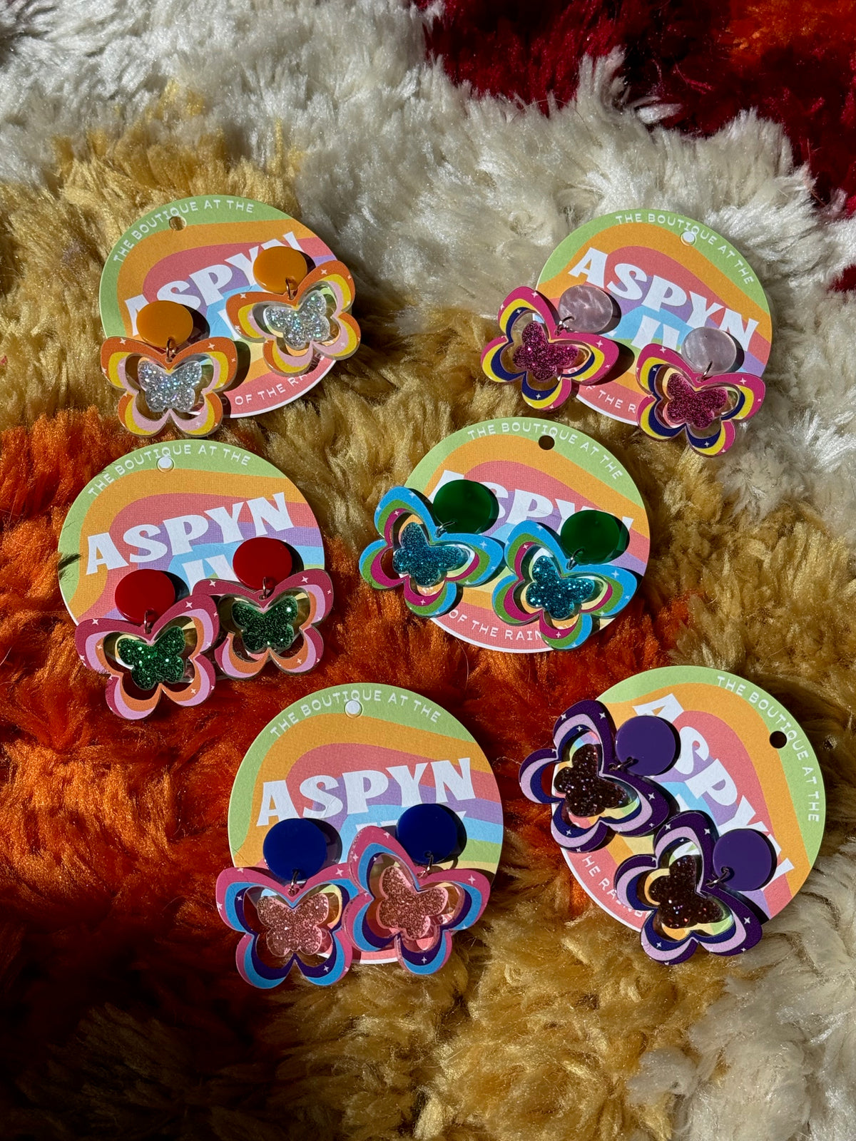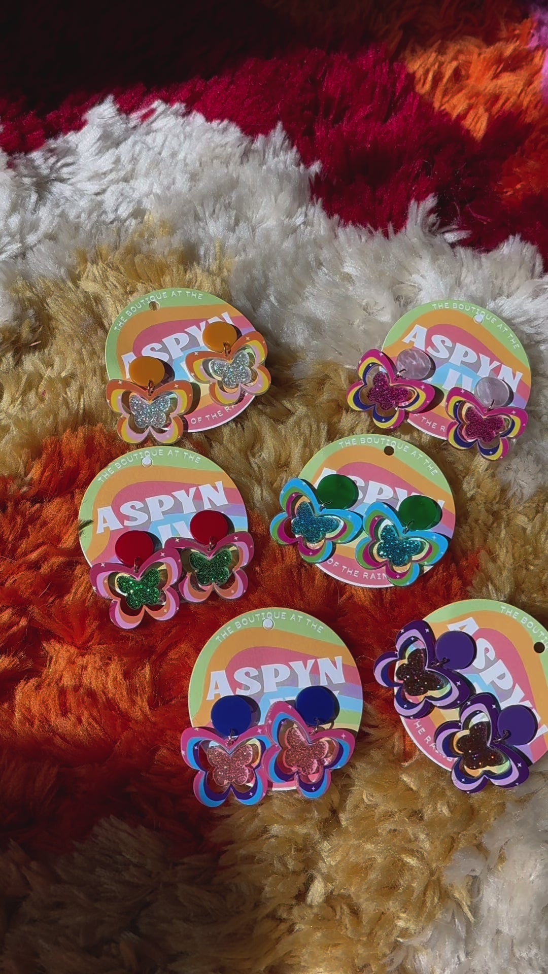 THE DREAM EARRINGS ARE HERE!!! Feel your best and most colorful self with these gorgeous butterfly earrings- available in so many different color combinations! Let them be the star of your outfit or match them to your rainbow outfit!!!