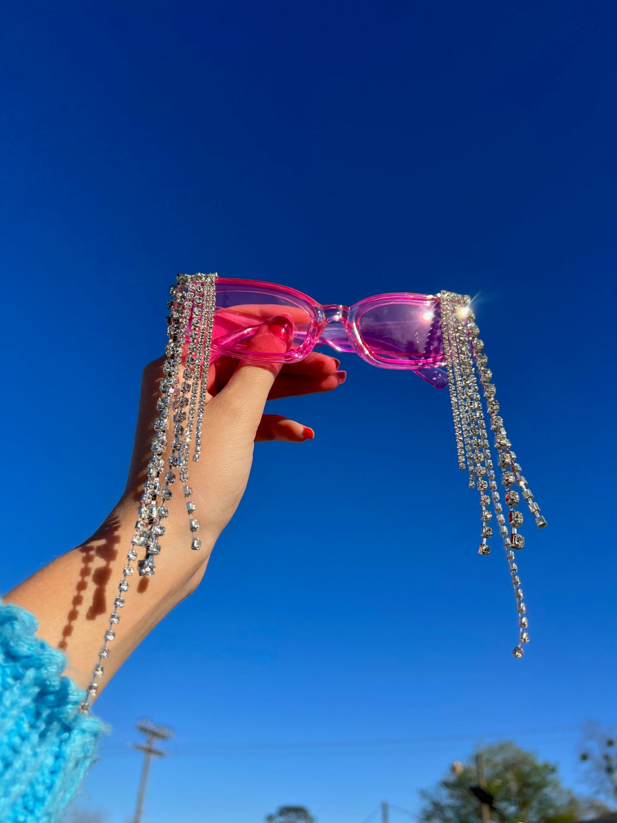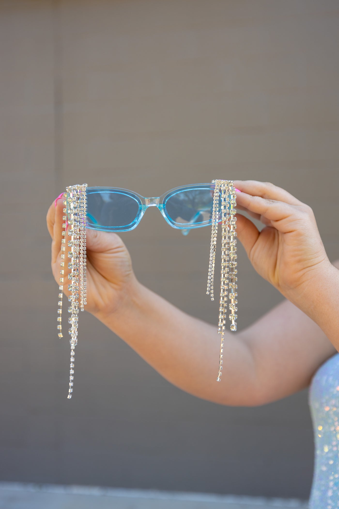 You are the coolest person ever...it's time your wardrobe reflects that! These sunnies are far from average with their dangling rhinestones and fun colors. Even with the most basic outfit, these sunglasses will add all the drama you need.