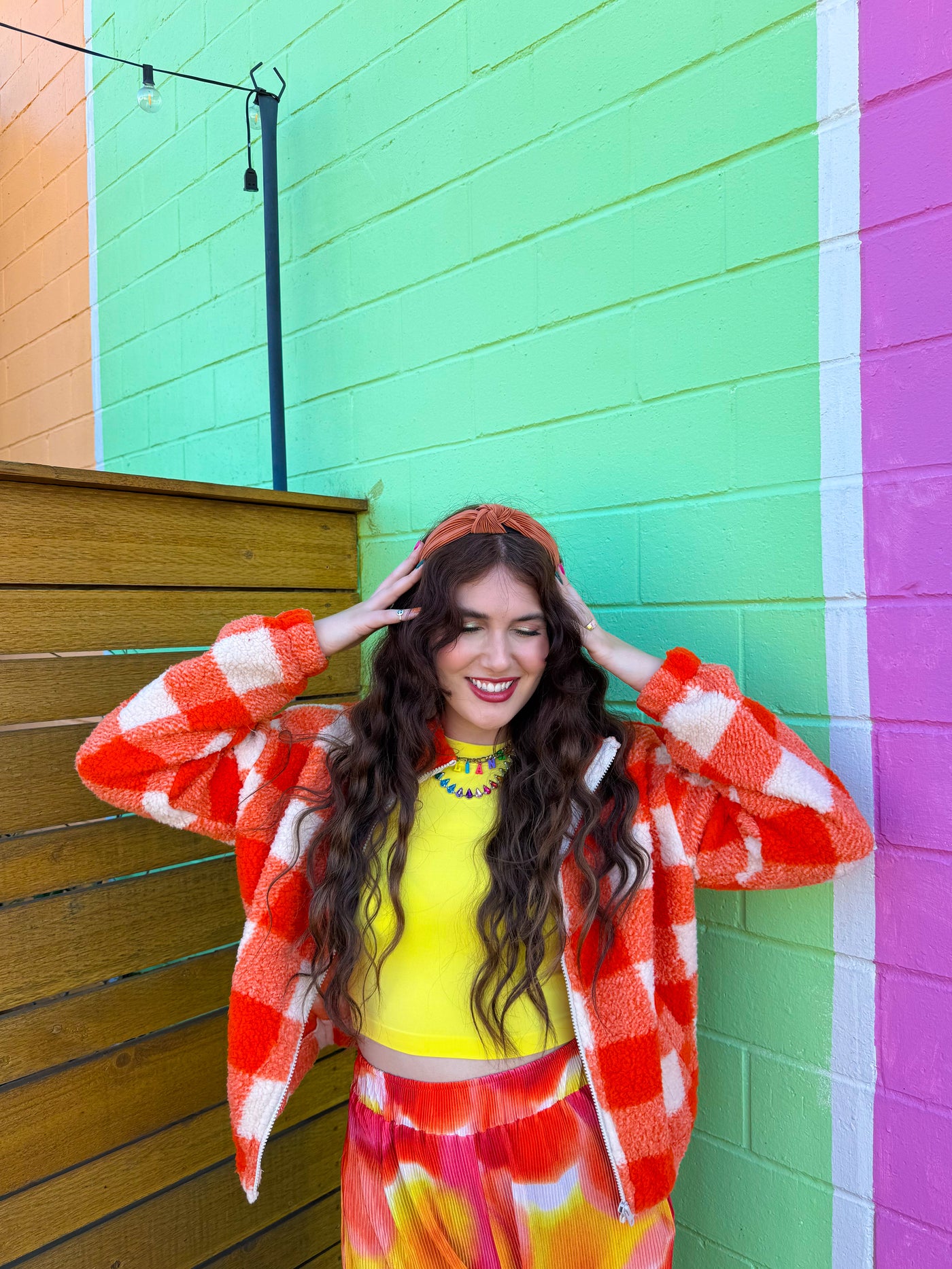 Add a pop of color to your look with this headband! The tie in the middle gives it a fun touch, and this color goes with so much- so make it the star of your outfit or pair it with more orange!