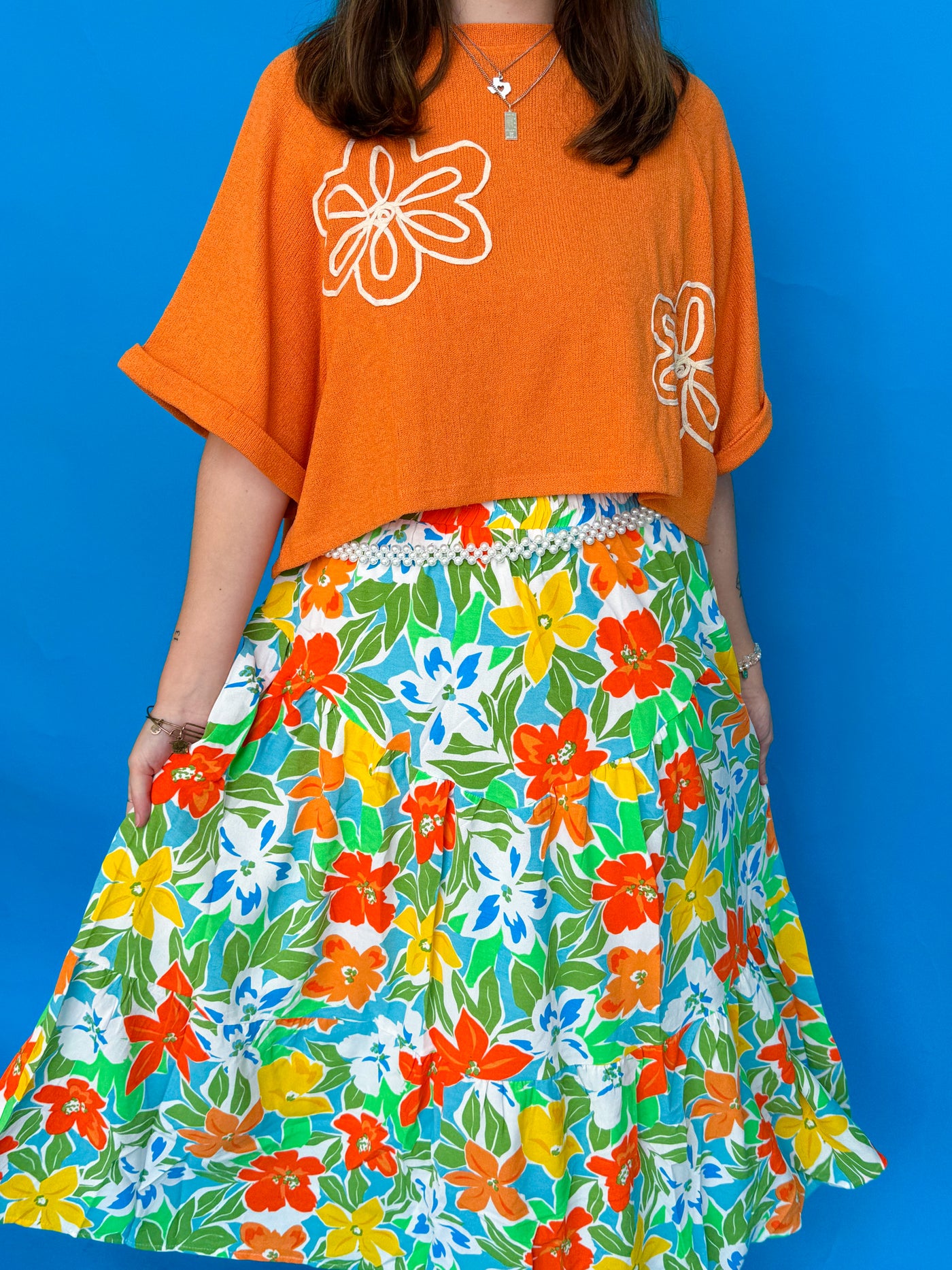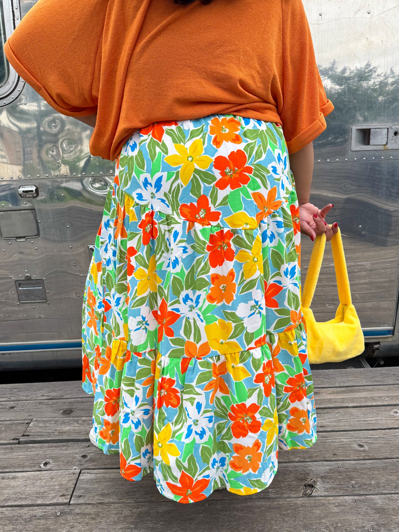 Vacation mode is ON in this maxi skirt!!! All of the colors of our DREAMS!! Blues, oranges, greens, yellows- styling is ENDLESS with this maxi skirt! Plus, it is super lightweight for those hot summer days- and it's double lined!! We love styling this skirt with tank tops, loads of accessories, oversized tees, and boleros! Get ready to be the best dressed on your vacation!!