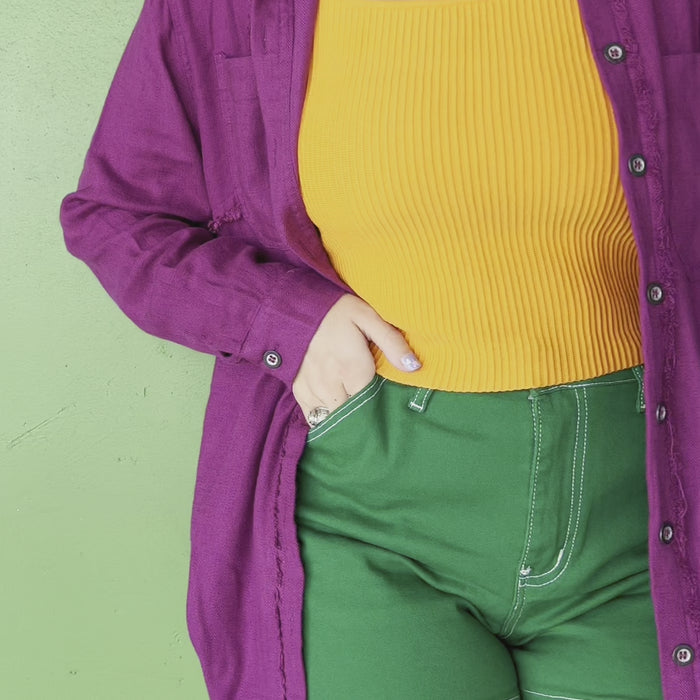 Be HAPPIER THEN EVER in our new green cargo shorts! With the stand-out stitching, high-waisted fit, and green color that is perfect for transitioning to fall, it will be impossible to feel sad in these shorts! Fabric is a sturdy denim that still has some stretch for extra comfort. We paired ours with the Sparks Fly top in orange and the Party tulle top.