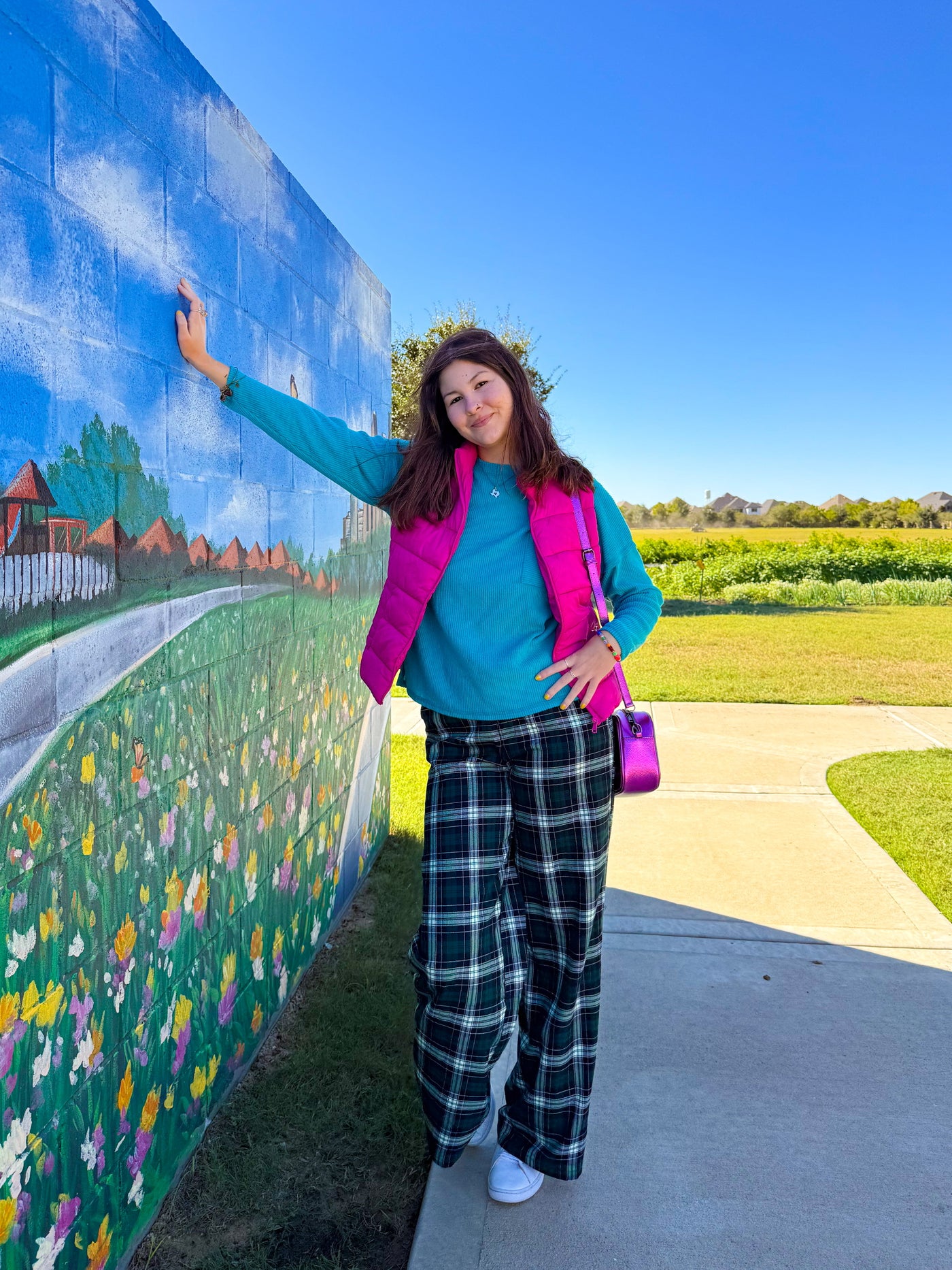 Who says that pants have to be boring?! NOT US!! These plaid pants are so cute & versatile! Style for the office, going to a show, or running errands! The navy, white, and dark green in the plaid are so easy to style, and mean endless outfit and color combo opportunities!! We love styling these pants with yellows, greens, pinks, and blues!