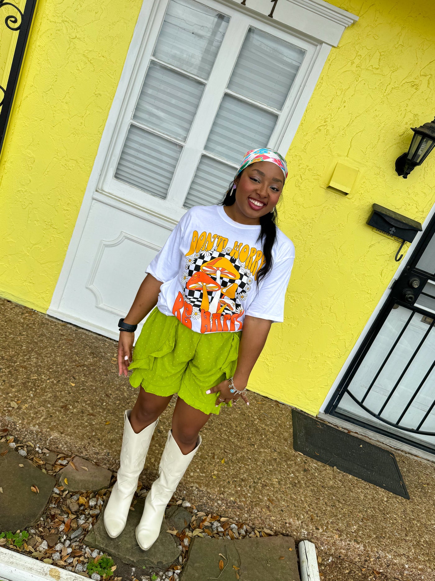 Colorful & comfy shorts are IN this season!! These green shorts have an extra flare to them to dress up an outfit no matter how you choose to style them! Wear your favorite tank top, a comfy graphic tee, or layer with a cardigan. The possibilities are endless with these cute shorts!