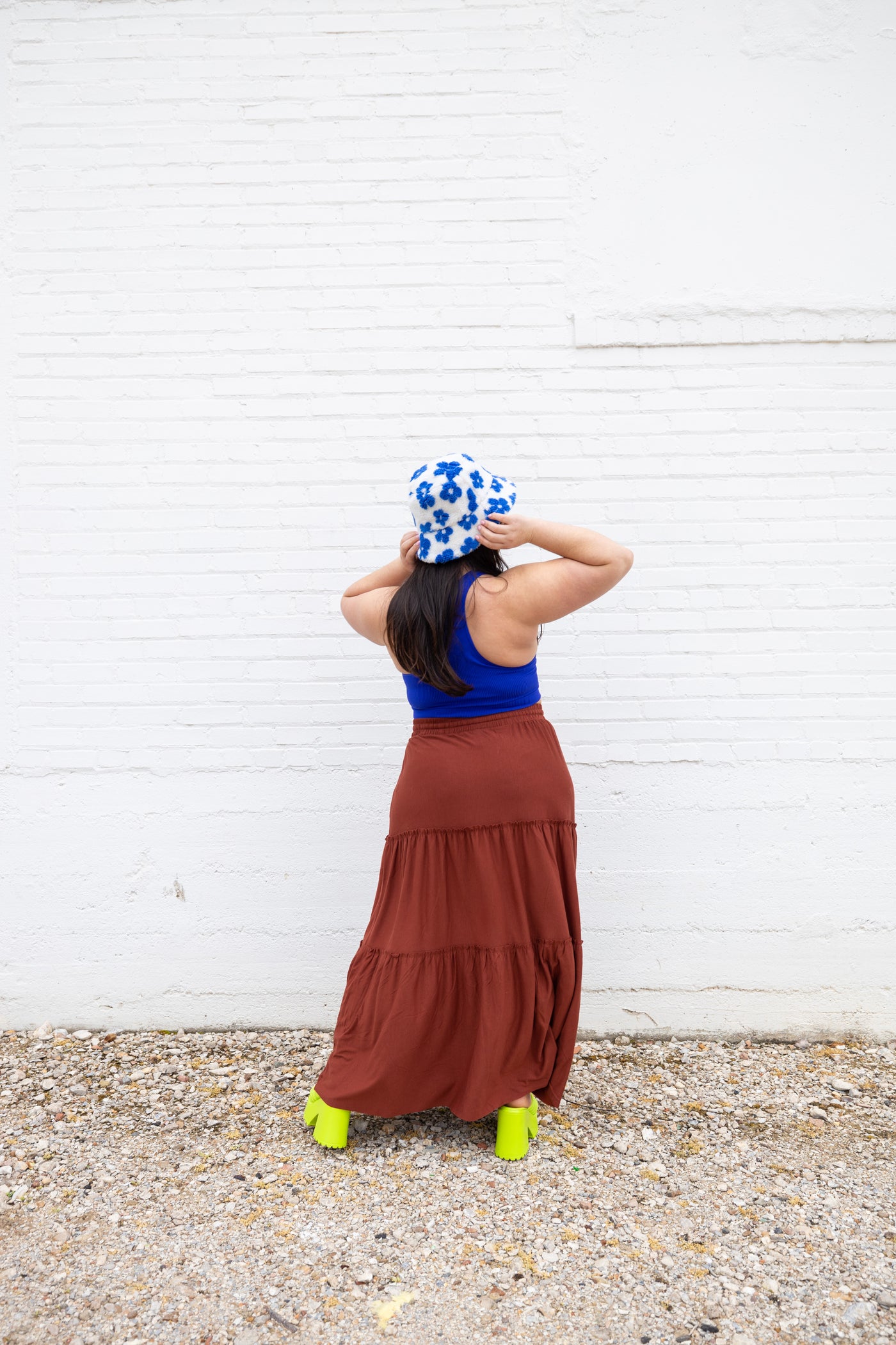 A flowy maxi skirt is a must for all those dreamy summer days. Comfortable and super versatile, you'll love this in your wardrobe all summer long! Need some brown outfit inspiration or need to know what colors go good with brown? Look no further! Pair your brown maxi skirt with purples, greens, oranges, or yellows!