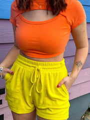 The Live Each Day shorts are made of a terry cloth material, have pockets, and a high waisted fit. The terry cloth material is perfect to pair with your favorite beach items.