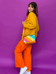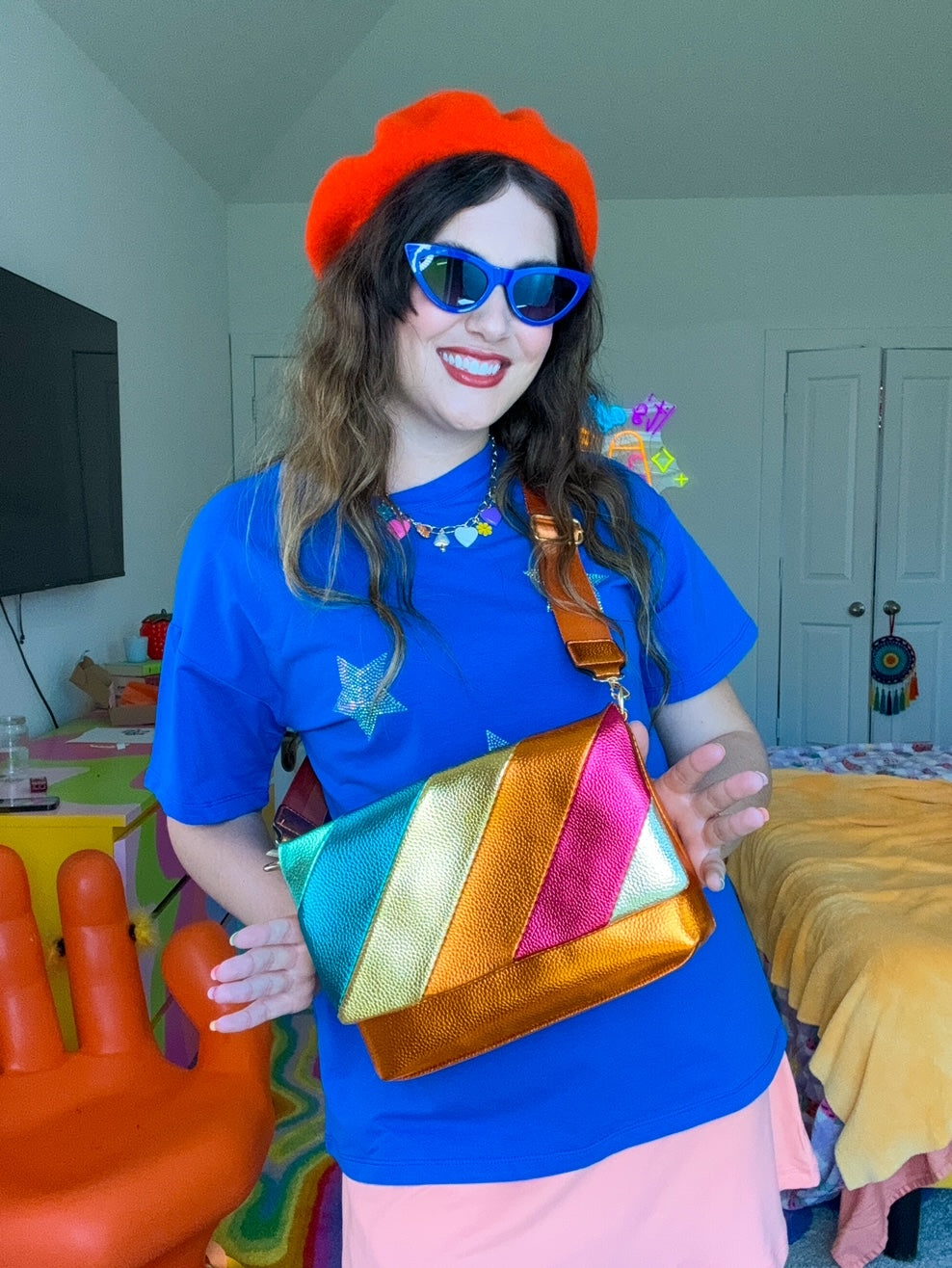 A more magical purse simply does not exist! This metallic rainbow purse fits all of the essentials in it, and the strap is adjustable for all of your needs! Plus, the metallic orange base makes it the perfect colorful fall accessory!!