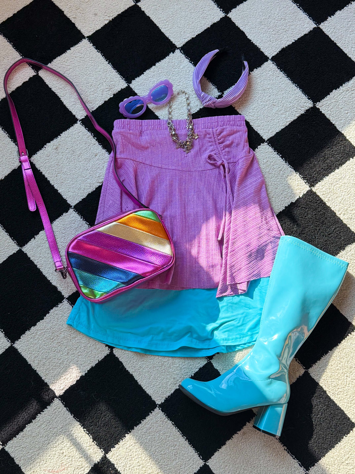 THIS OUTFIT BUNDLE INCLUDES: Happy Vibes Only Purple Skirt (styled as a strapless top): https://therainbowcloset.com/products/lavender-skirt-s-3x?_pos=1&_sid=3eaa1dd96&_ss=r Bow Blue Power Skort: https://therainbowcloset.com/products/light-blue-skirt-s-3x?_pos=1&_sid=d7f952d2c&_ss=r