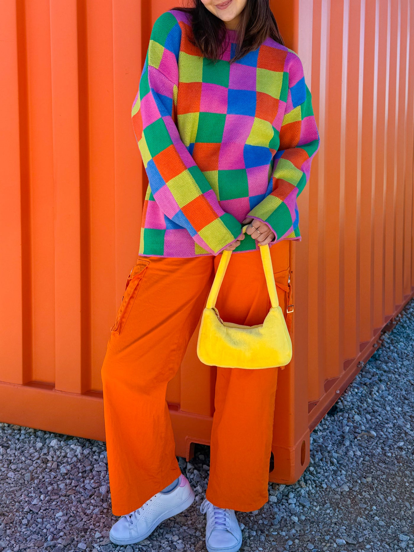 Rainbow Checker Sweater: https://therainbowcloset.com/collections/newarrivals/products/rainbow-checkered-sweater-top