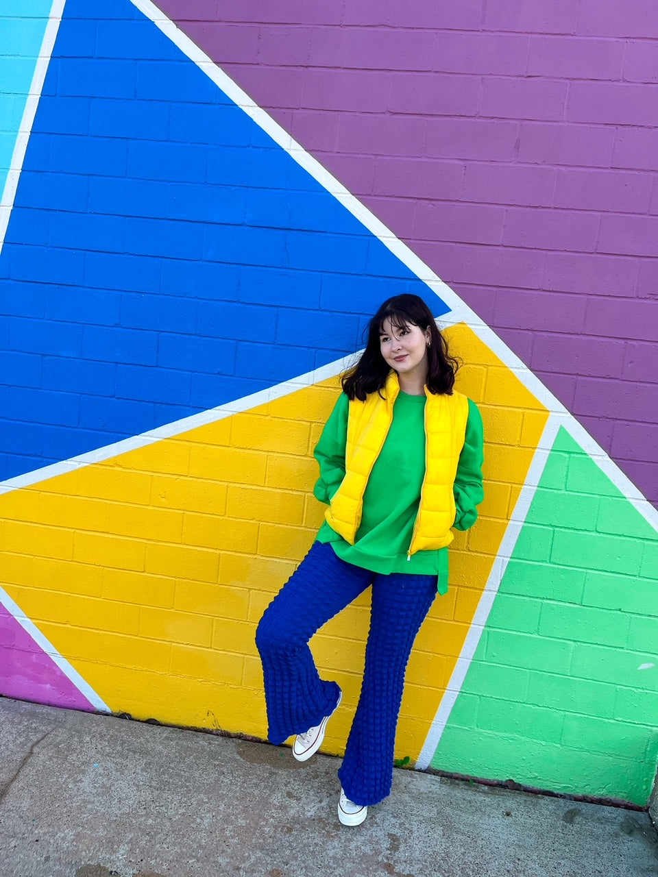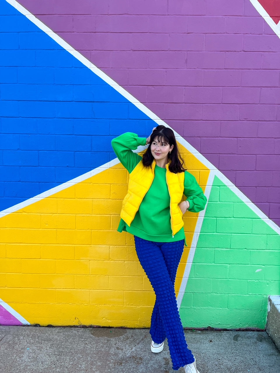 Style this green with yellows, blues, and pinks!