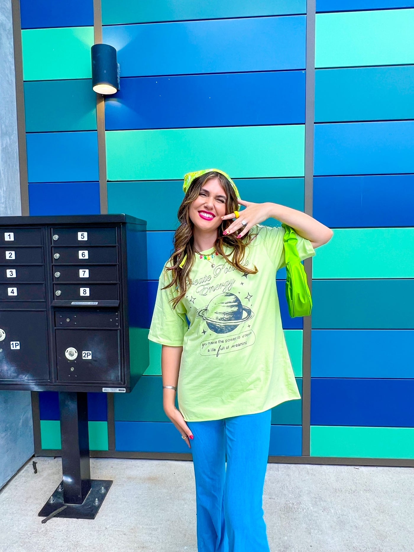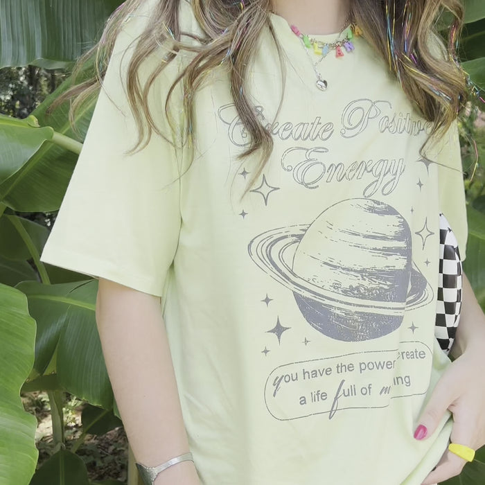 Another adorable graphic tee for your collection! This sage green tee has an oversized fit and features an inspiring graphic about positivity on the front. Pair with some fun checkered biker shorts for the ultimate summer cool-down outfit. This tee is perfectly oversized so we recommend ordering your true size!