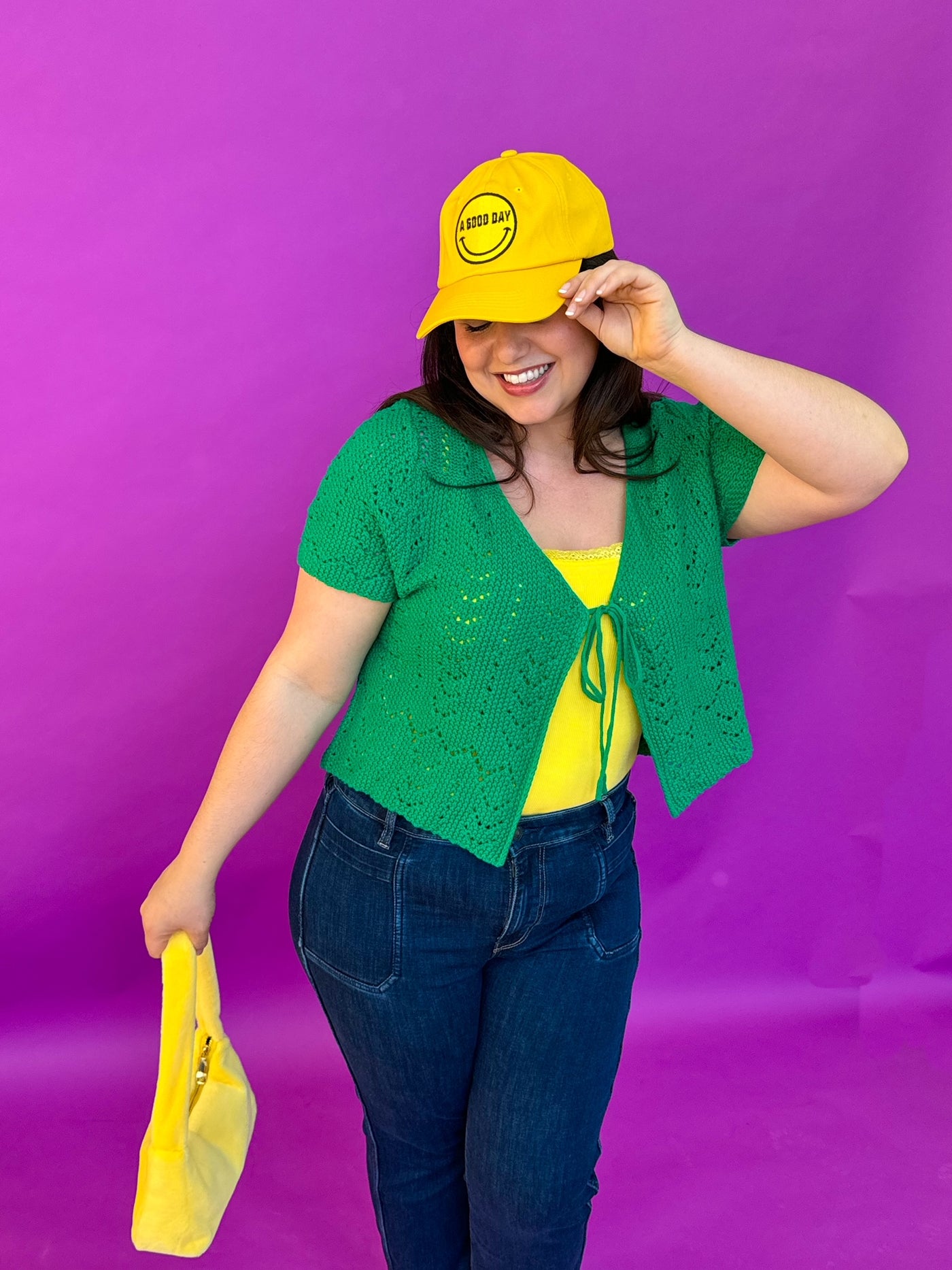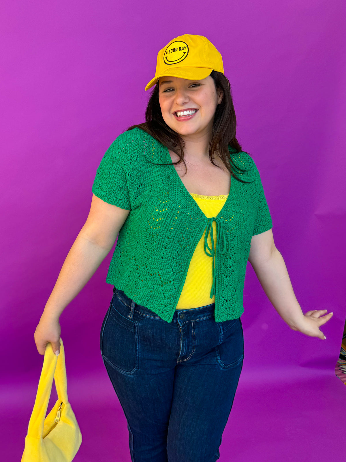 The perfect colorful layering piece for every outfit! Even on a hot day, this crochet piece adds an extra layer of color and style!! Style this shade of green with blues, pinks, and oranges! Layer over your favorite tank top or a cute sundress!