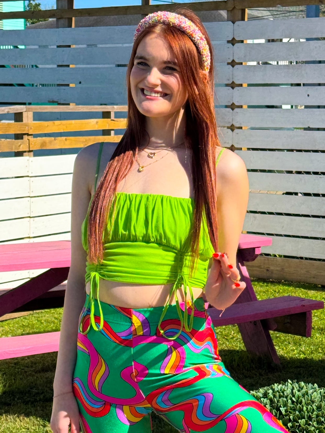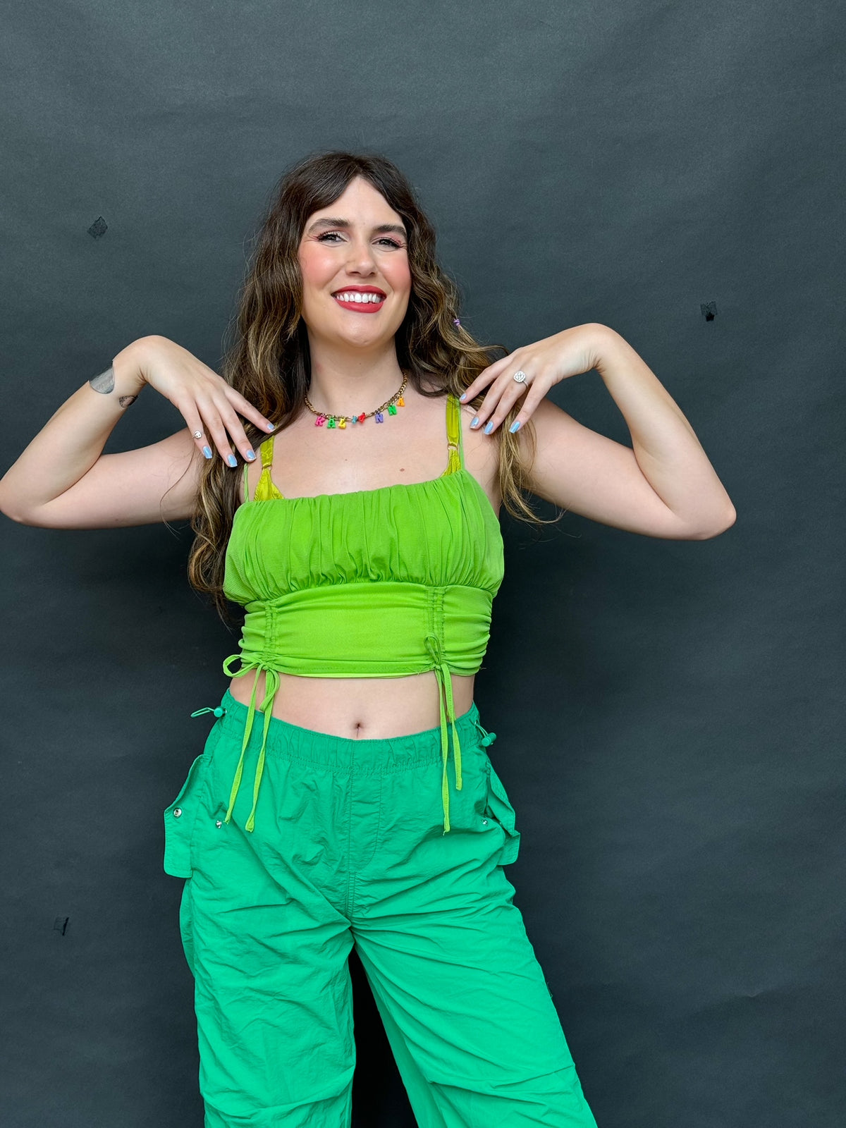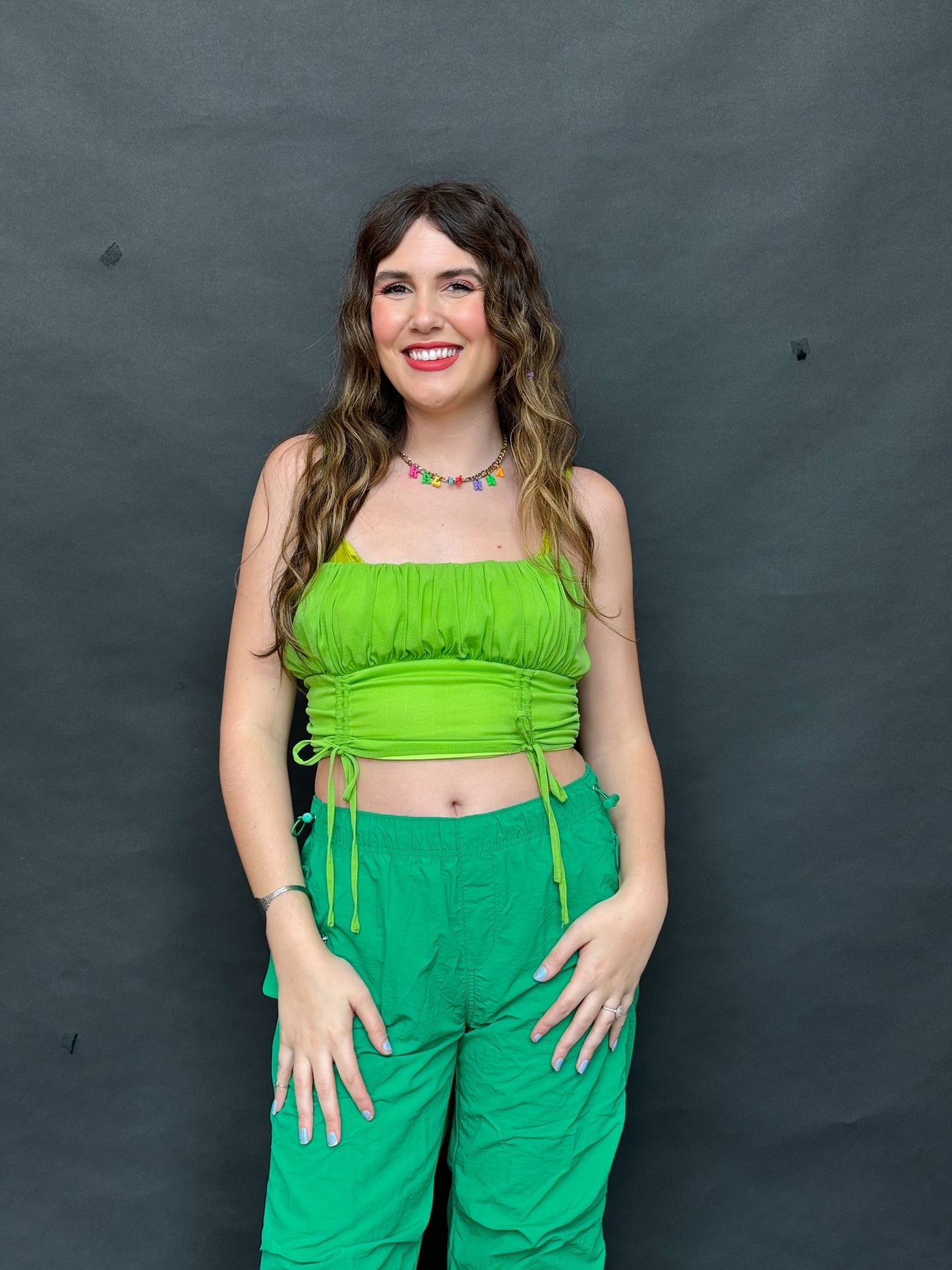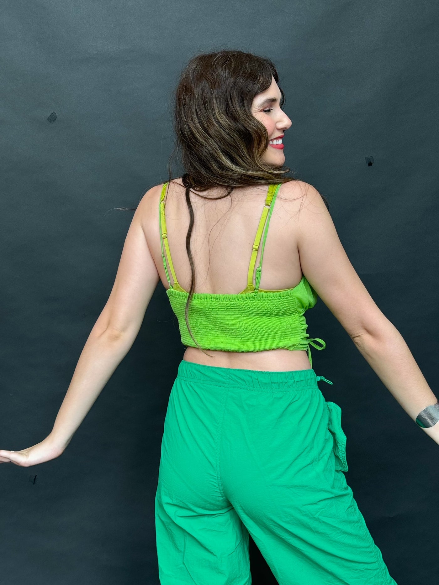 Need a color pop? We got you. The Grass Ain't Greener tank is an adjustable, scoop neck top with a...