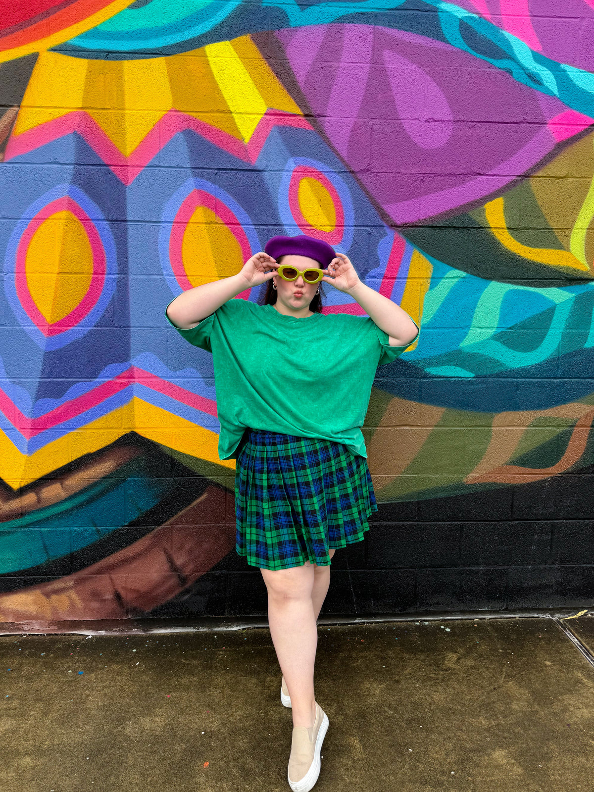 Colorful basics for the WIN!!!! This oversized green tee is the perfect top for layering this winter- and for keeping it casual! The super soft fabric makes it comfy and perfect for casual outfits! Layer with a long sleeve or vest, pair with jeans or funky flare pants, and style with every color in the rainbow! We love styling this shirt with oranges and yellows the most!