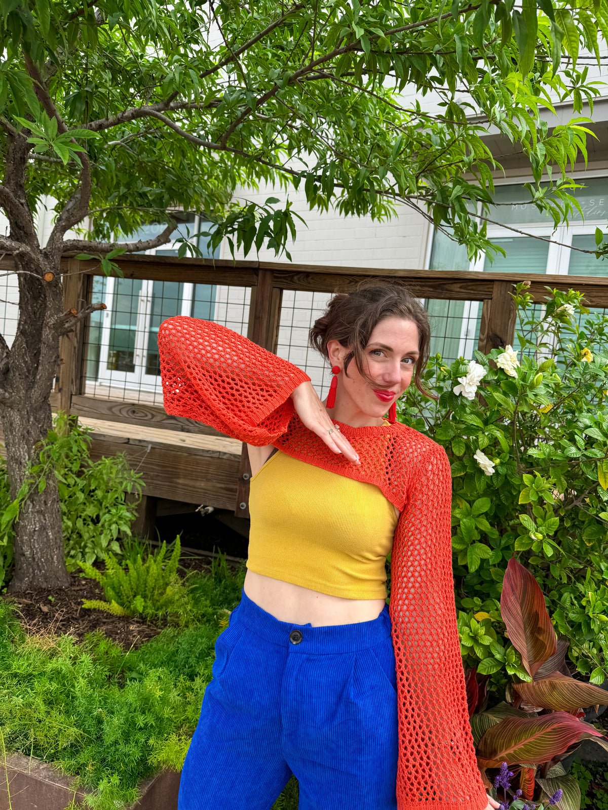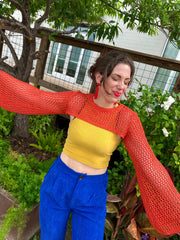 The Mustard Crop Top is a colorful basic you need in your closet. It has a cropped fit, racer back style, and the fabric is extremely soft. Seen paired with the Flower Power sweater skirt.