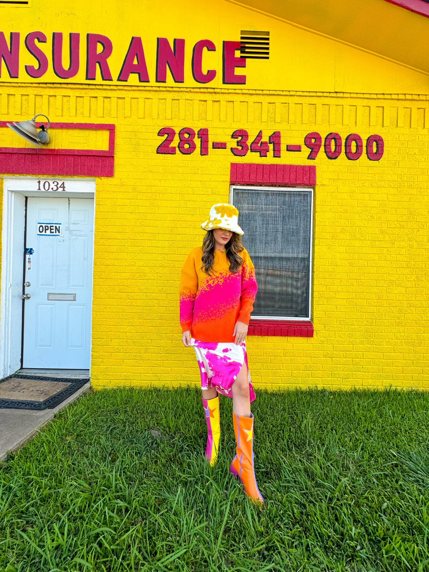 The sunset sweater of the season!! This ombre sweater brings the fun and color to every outfit! Style with jeans, skirts, fun pants- whatever feels right! The sunshine will always be with you!! Style with pinks, purples, neutrals, and oranges!