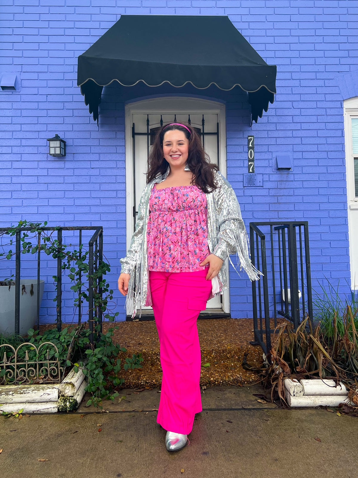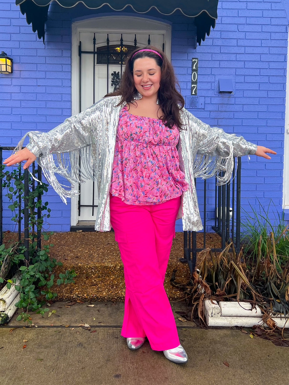 The perfect girly-girl blouse made for frolicking in a flower field! This top is the perfect transition top from Valentine's Day to spring and can be styled so many different ways! Style with jeans, cargos, skirts, pants- whatever you want! We love styling this blouse with reds, purples, and pinks, but don't be afraid to mix it up with the other colors of the rainbow!