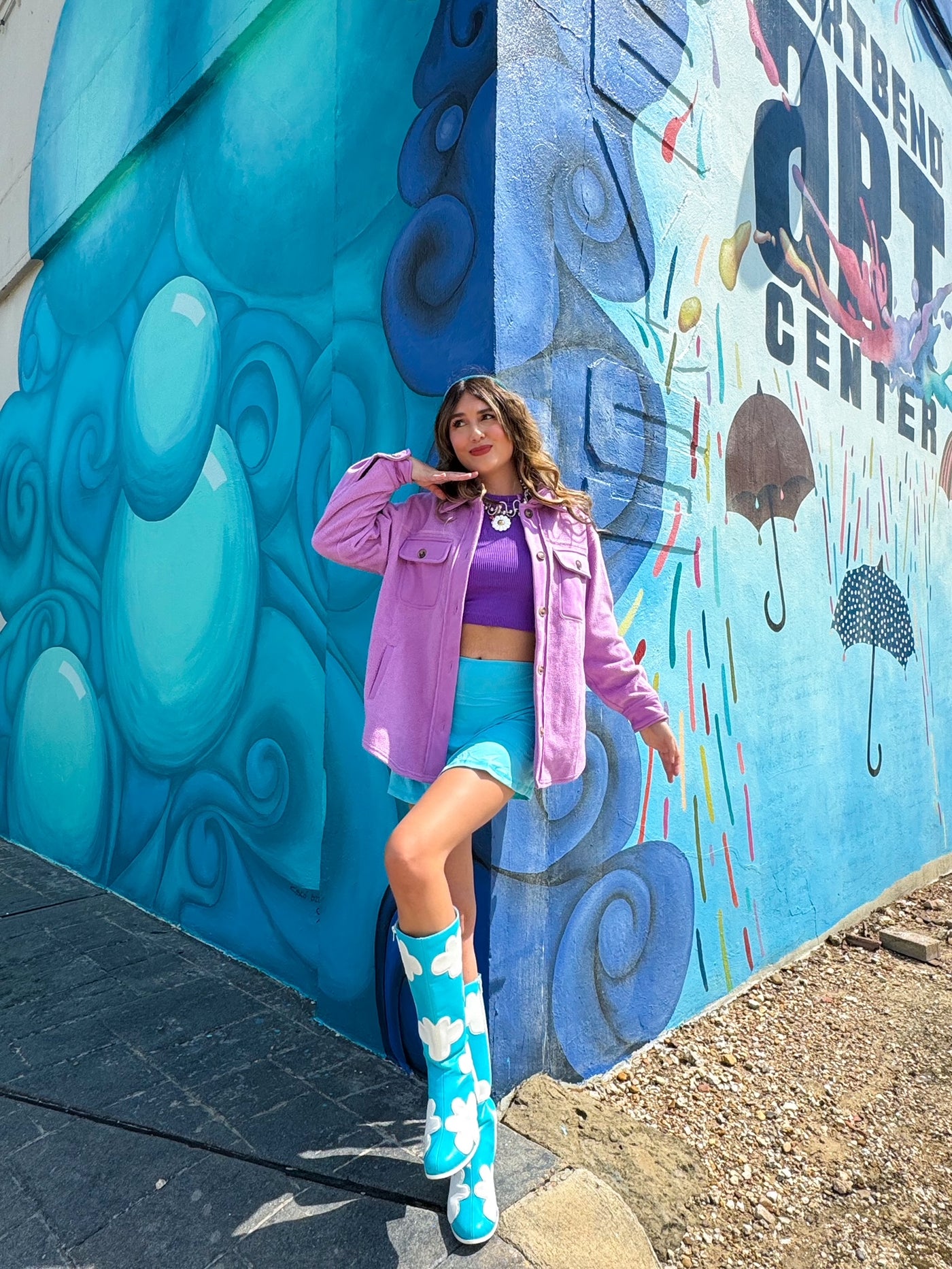 It's shacket season! Add this light purple shacket to every outfit for an easy transition between summer and fall weather! This shade of purple goes great with pinks, blues, and greens- but style with all colors! Layer over a tank top or a cute long sleeve top & pair it with some jeans or a skort!