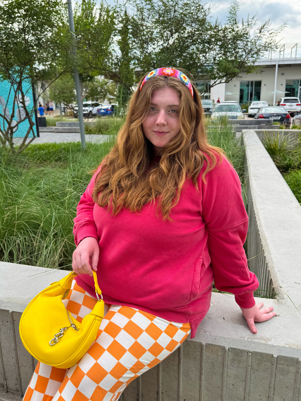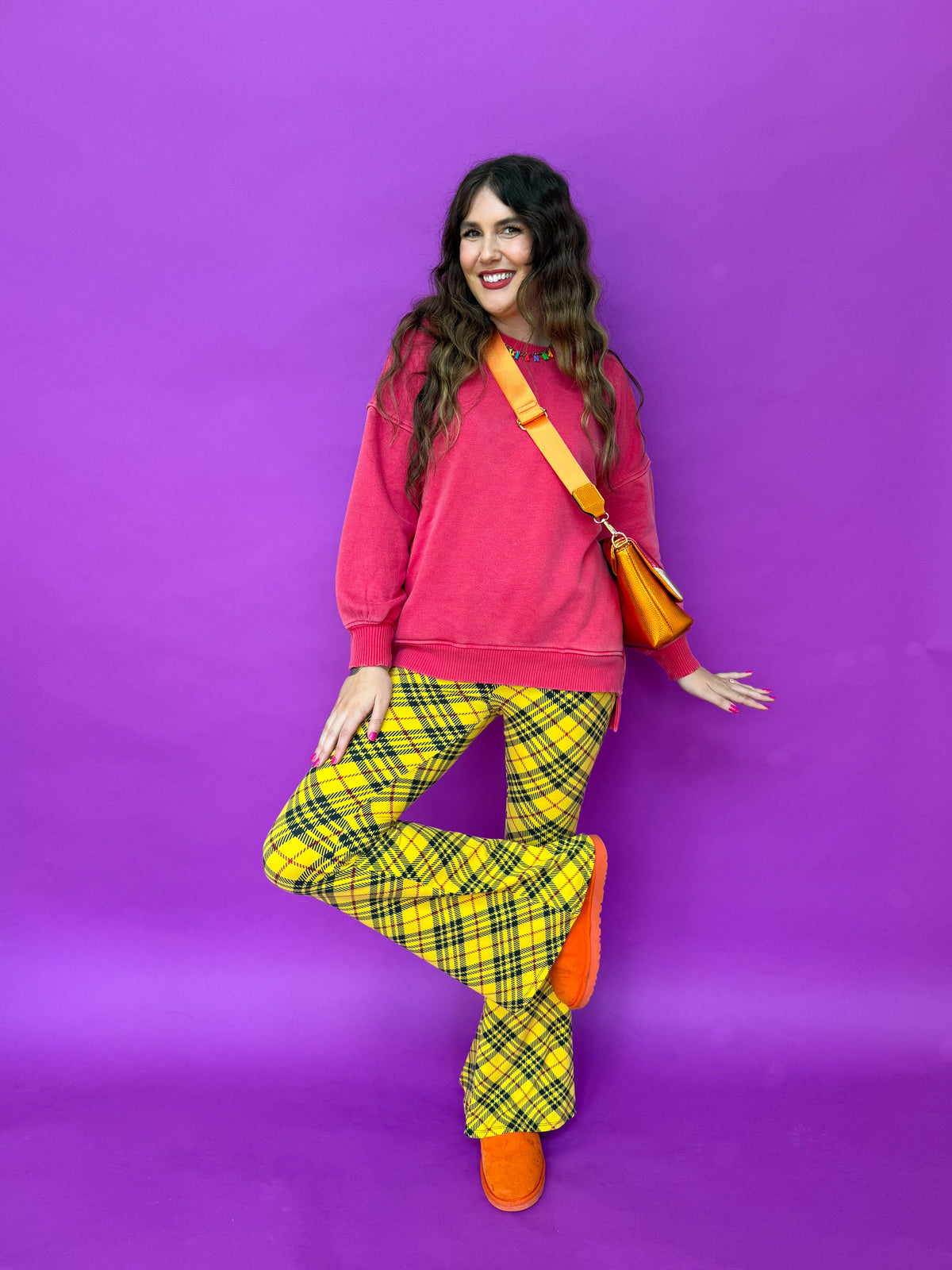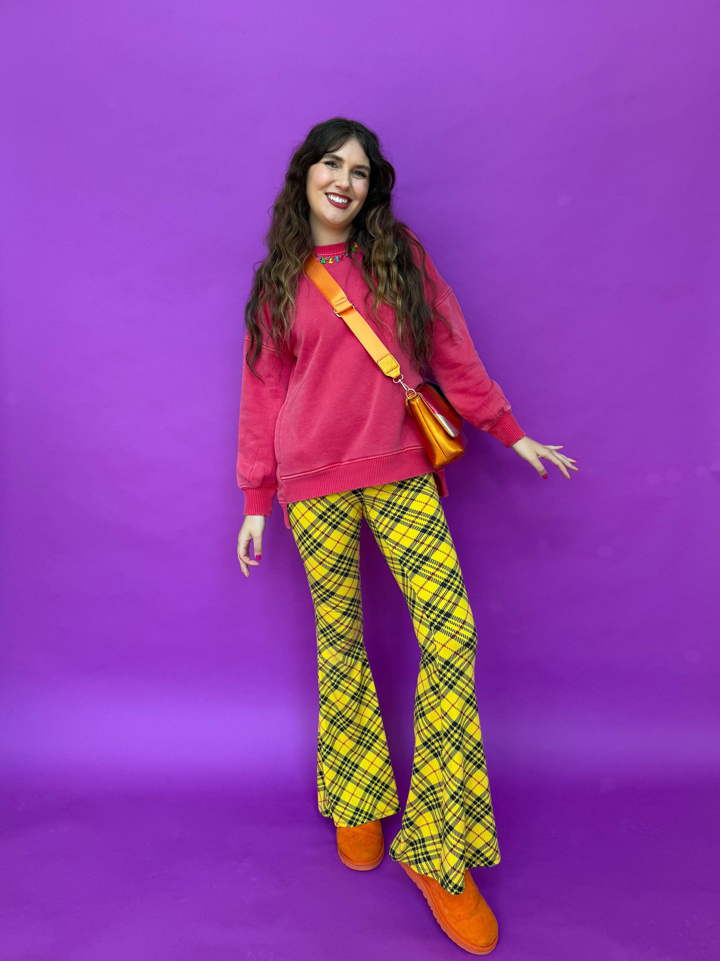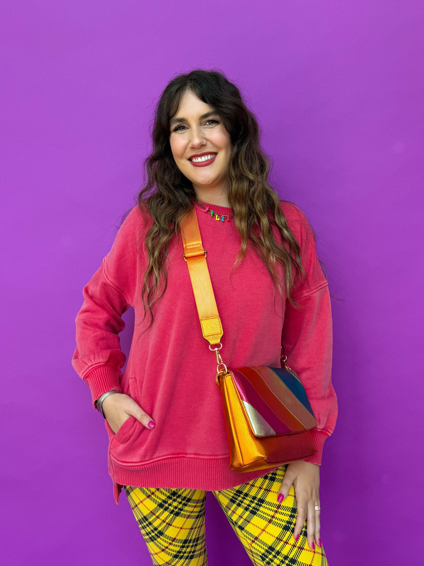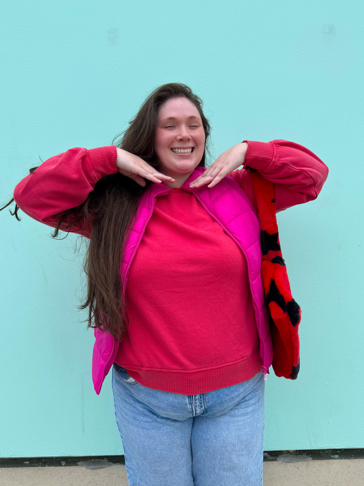 Crewnecks don't have to be boring and neutral! This red crewneck is extra cozy, easy to style, and has POCKETS!!! It can be dressed up with a cute skirt or dressed down with leggings or jeans! Plus, this shade of red is so much fun to pair with other colors! Pinks, blues, purples, oranges- you name it!! This crewneck will be your fall season closet staple!