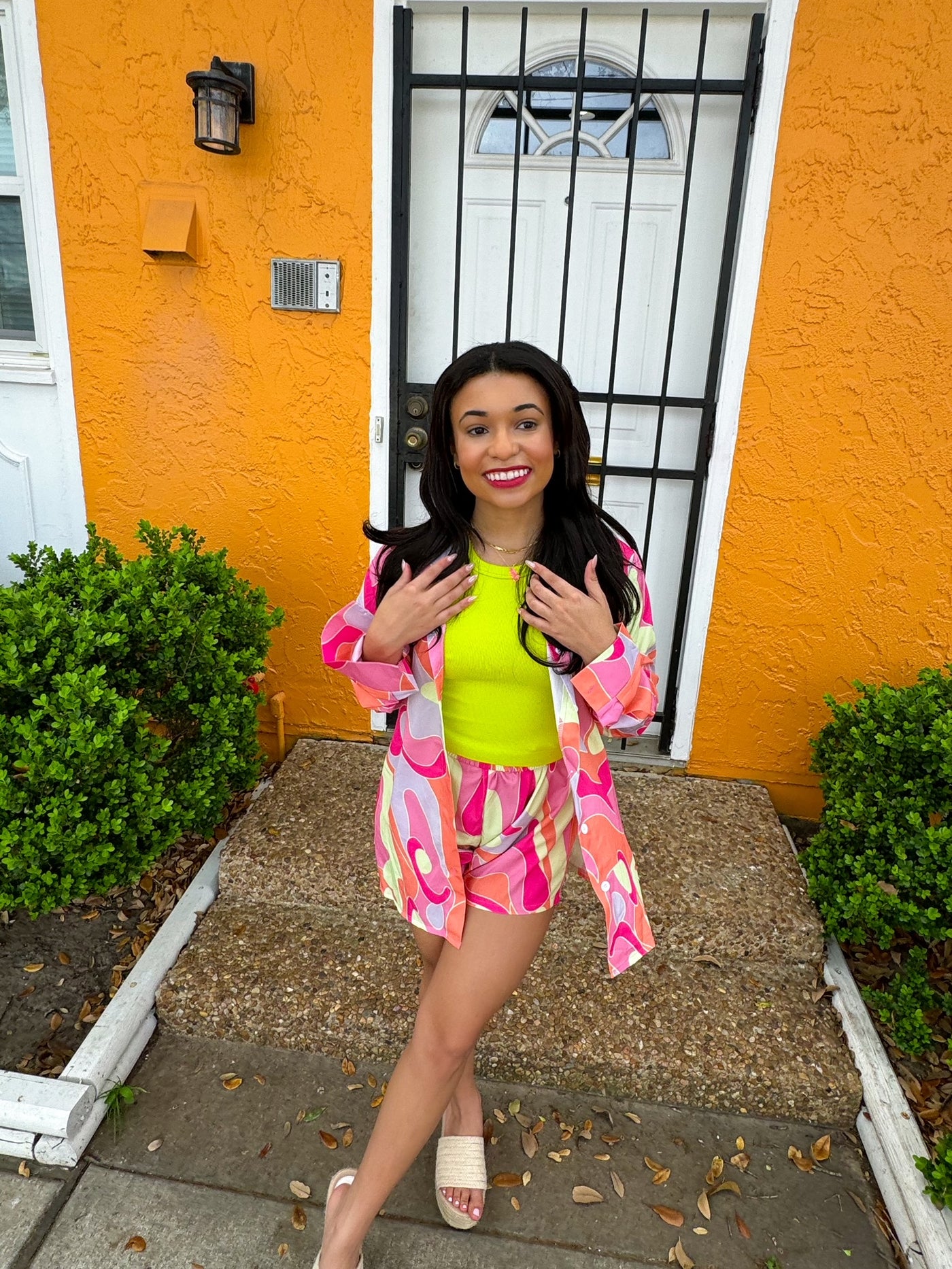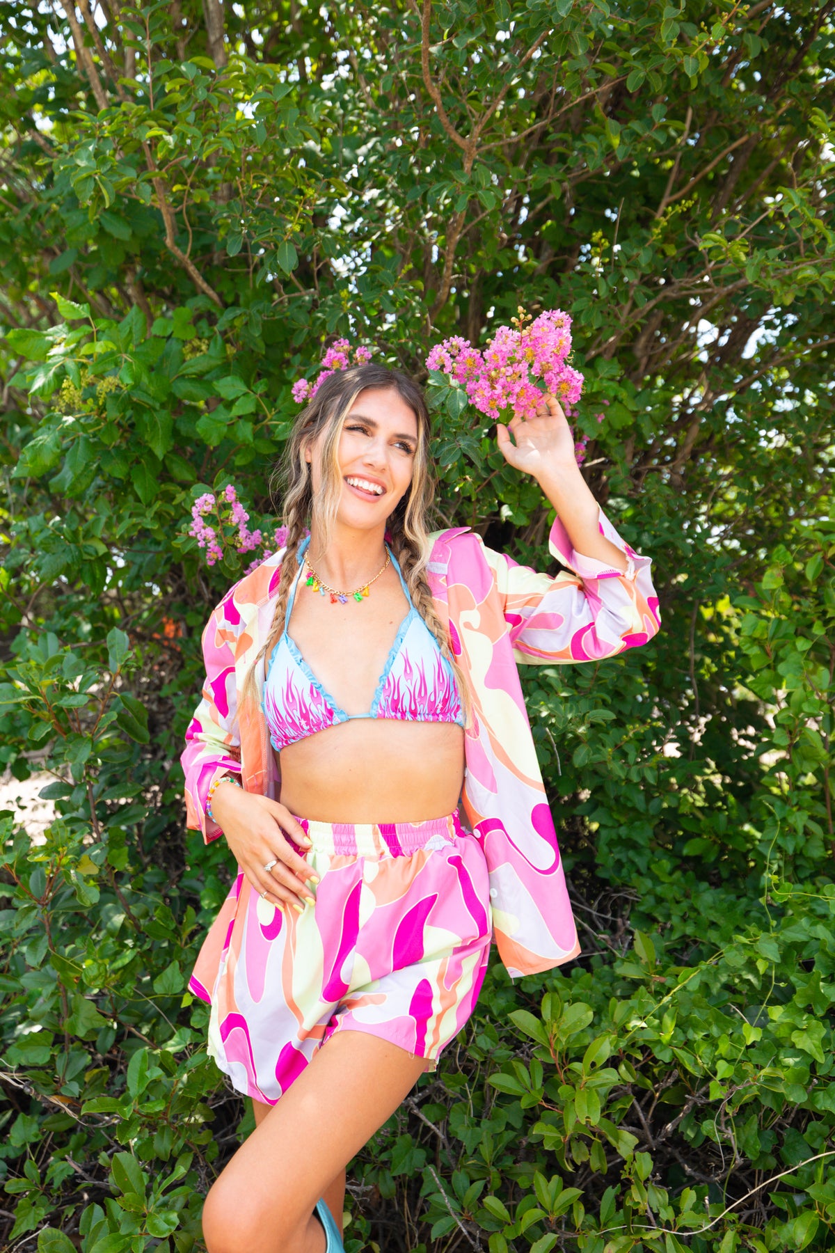 This fun summer set will have you groovin’ all through the summer. This set includes a collared button-down top and...