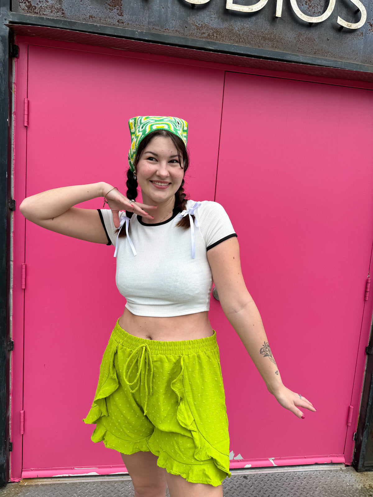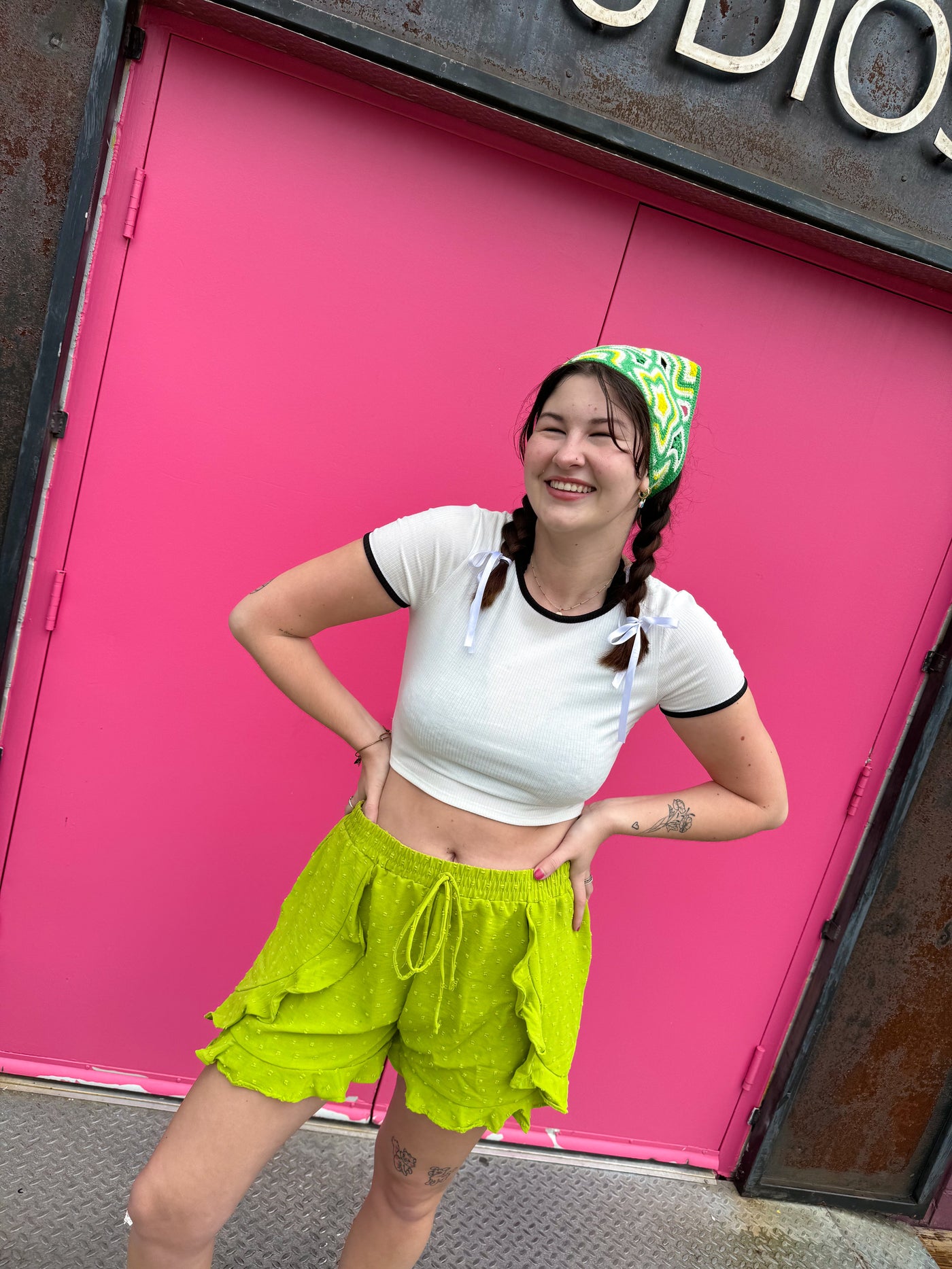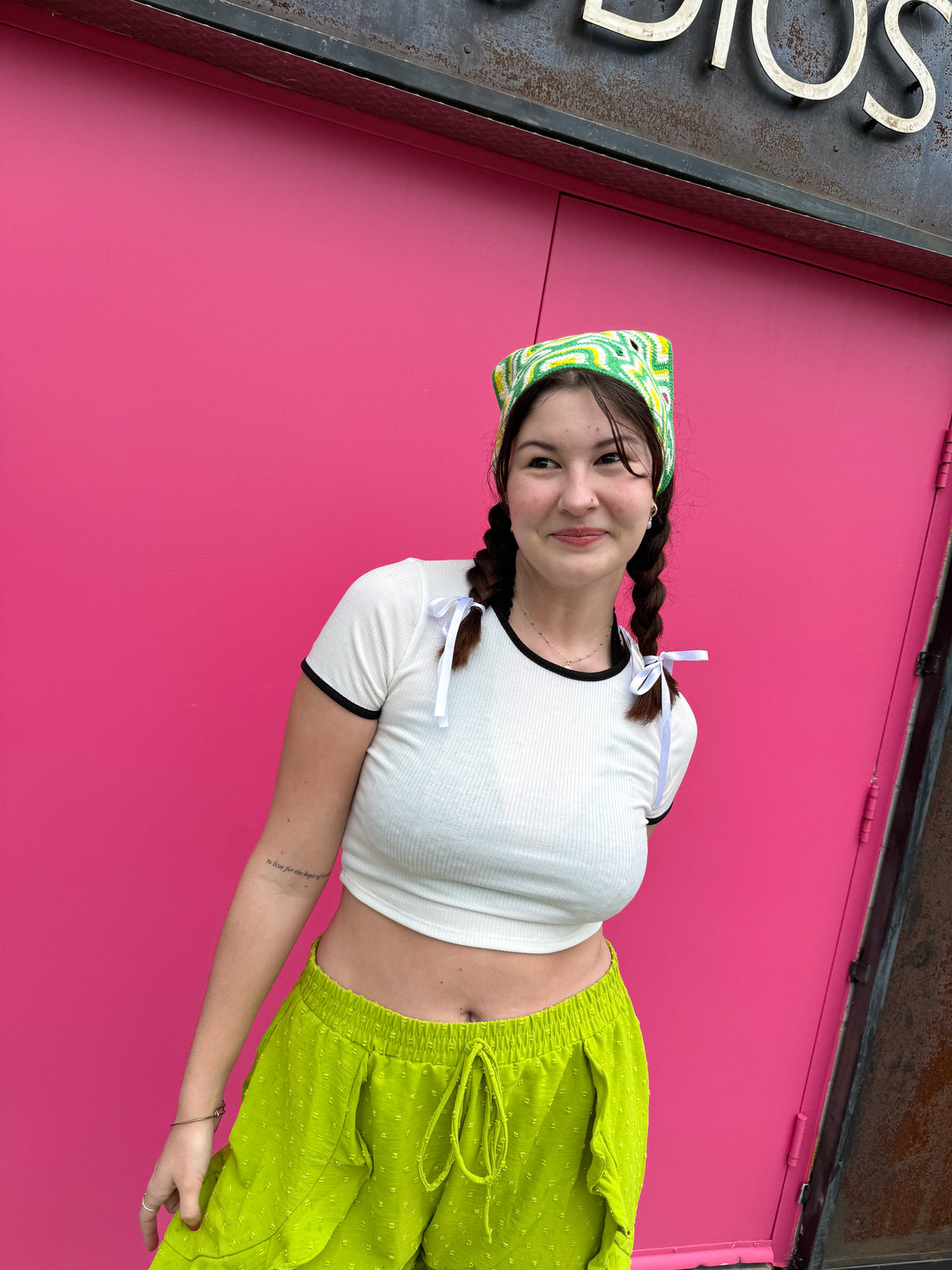 The School Girl tee is a great piece to mix and match with all of your colorful items. The white...