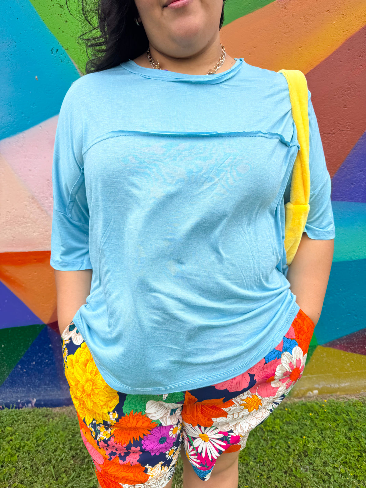 Who doesn't love an oversized tee- especially when it's in a fun pastel color!! This slouchy oversized tee is the perfect "throw something on and go!" shirt! Style it up with some stylish shorts or a skirt, or keep it casual with leggings!! We love this top with vibrant greens and florals, but pastels and neutrals look great as well!!