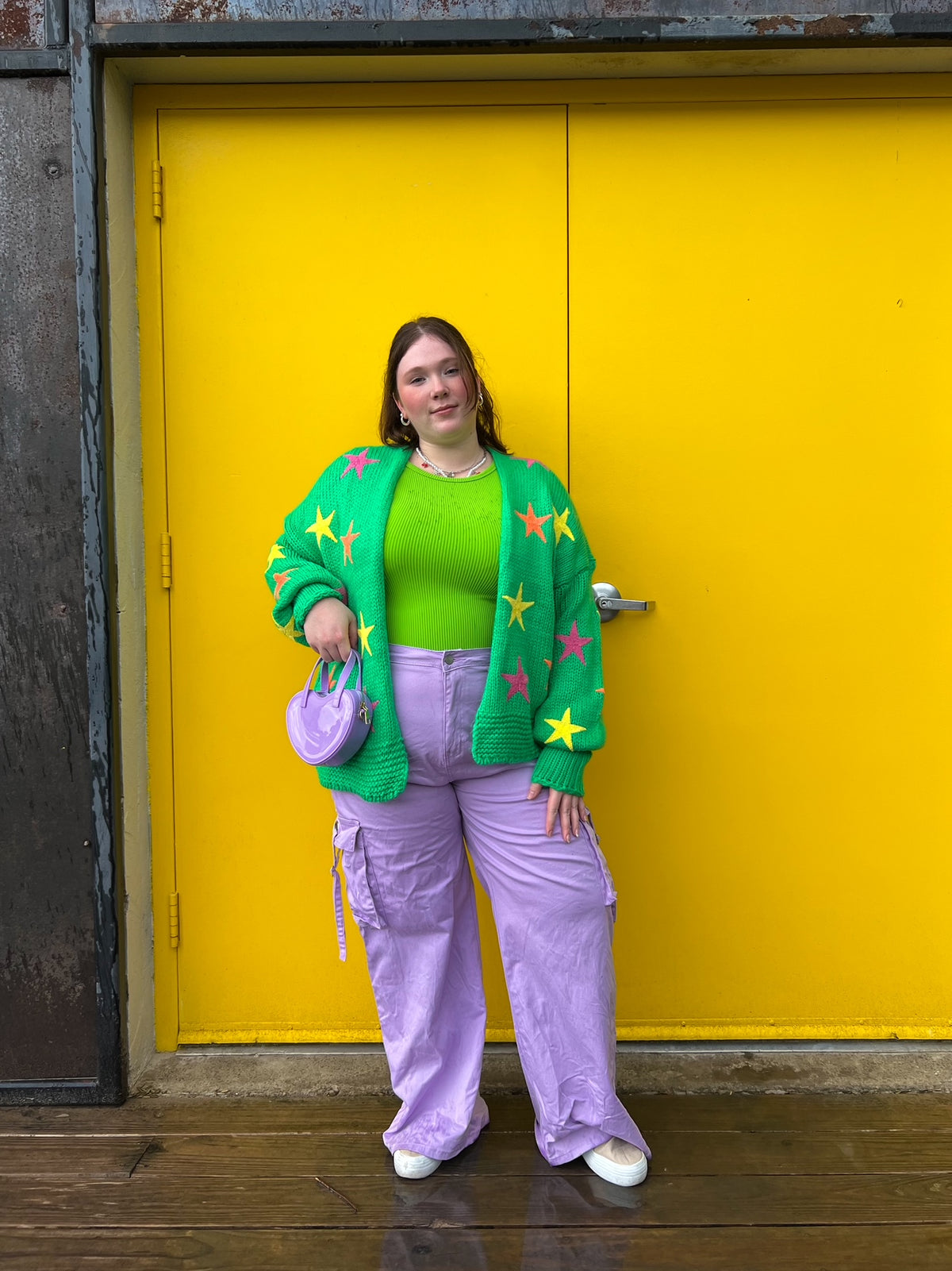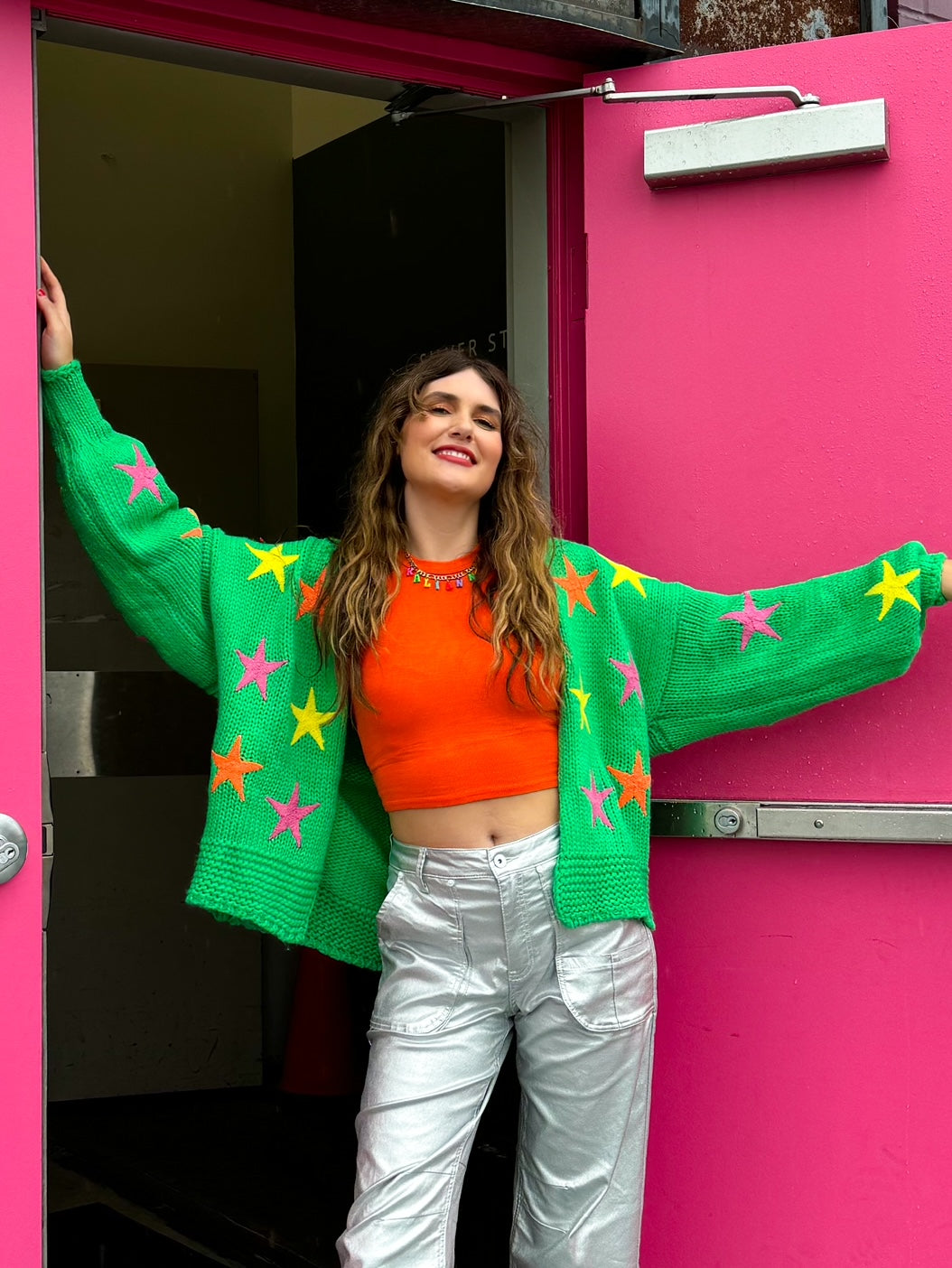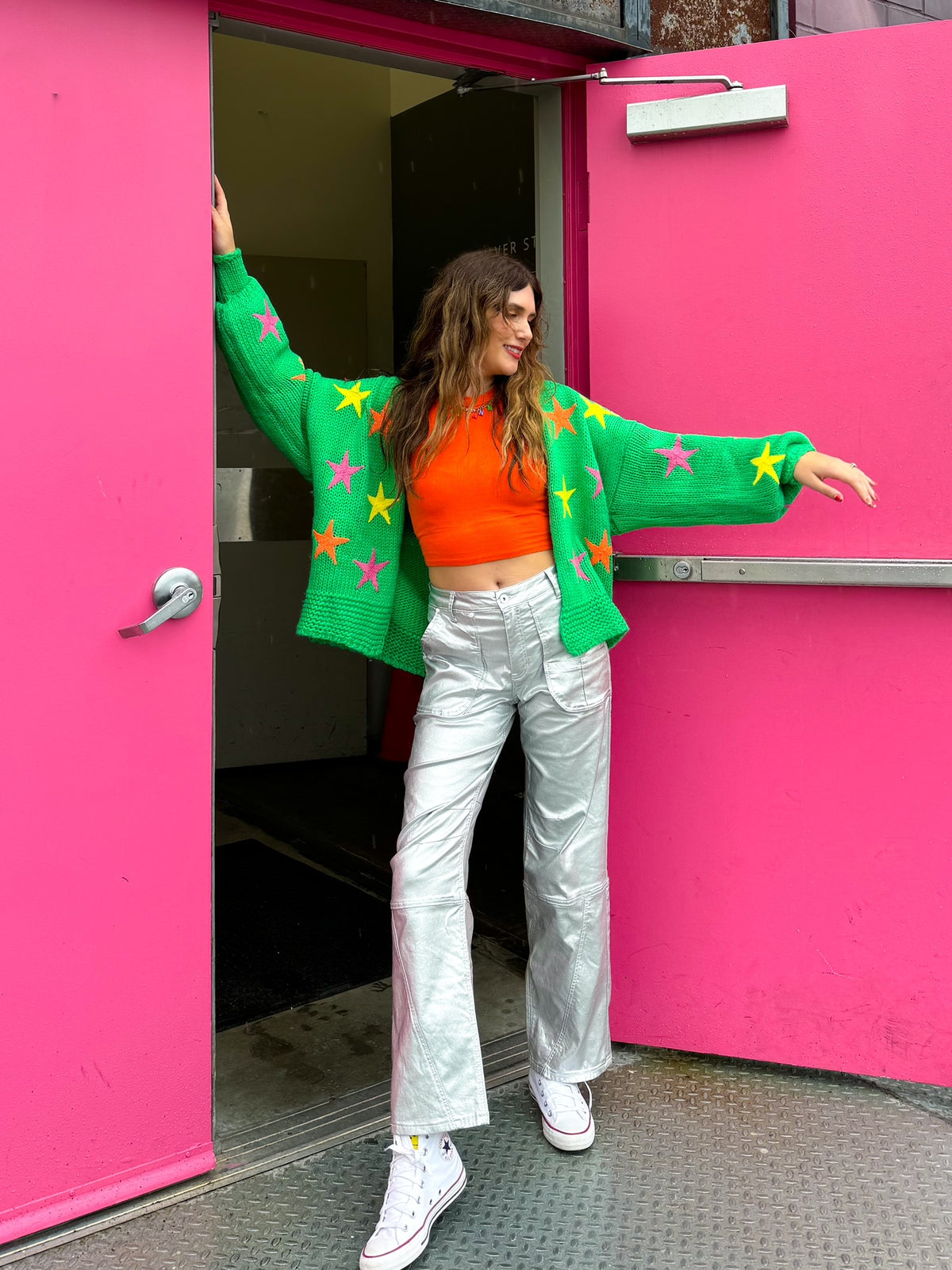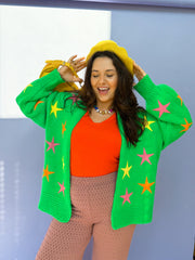 A star cardigan for a star- YOU!! Who needs boring neutral cardigans when this green star cardigan exists?! The green gives a pop of color to every outfit- whether you are wearing neutrals or want MORE color to your look! We love styled it with yellows, oranges, and purples, but every color is possible! Pair with tank tops, jeans, skirts, t-shirts; wear to work or out running errands on the weekend. This is the go-to colorful cardigan!