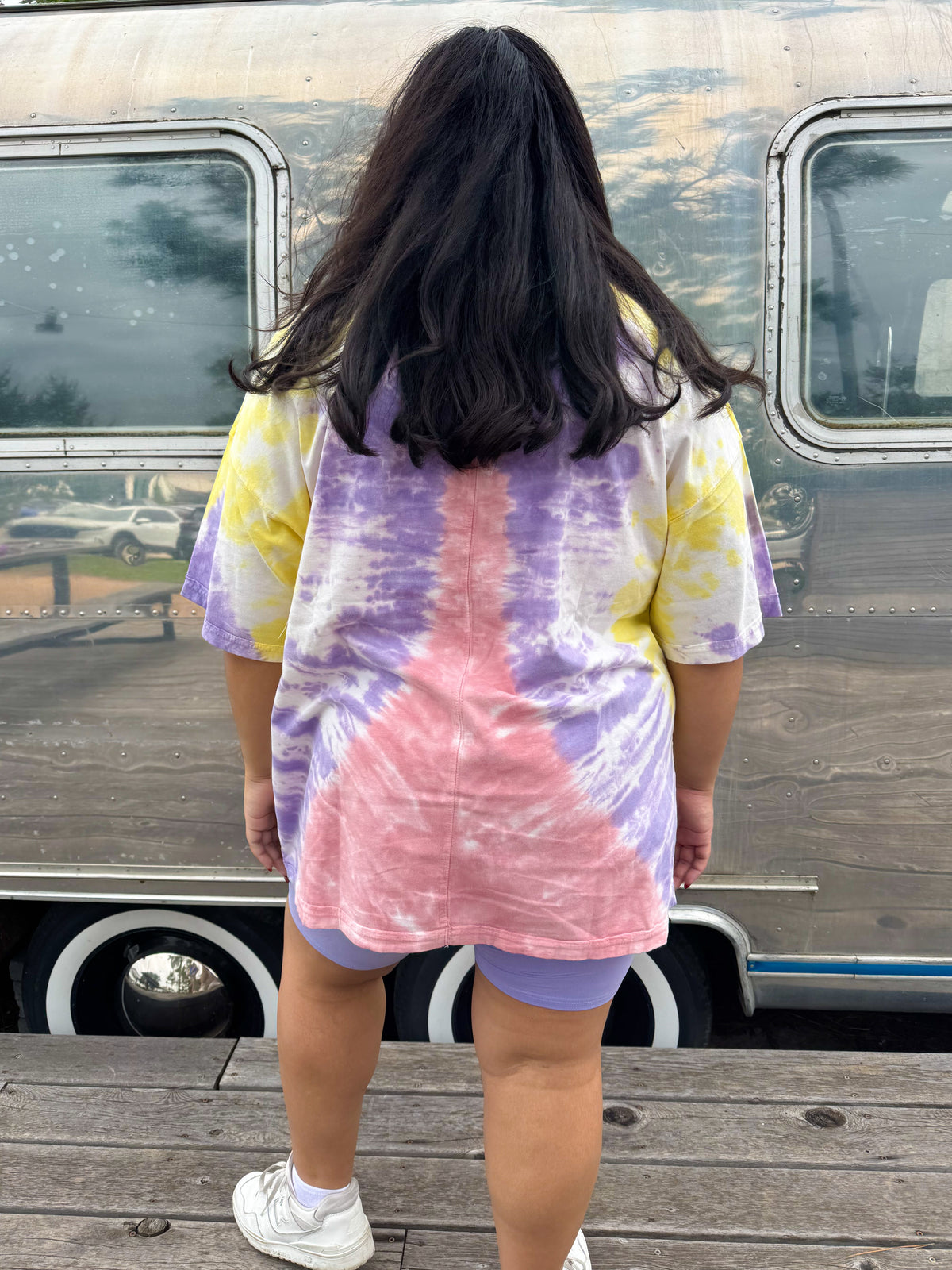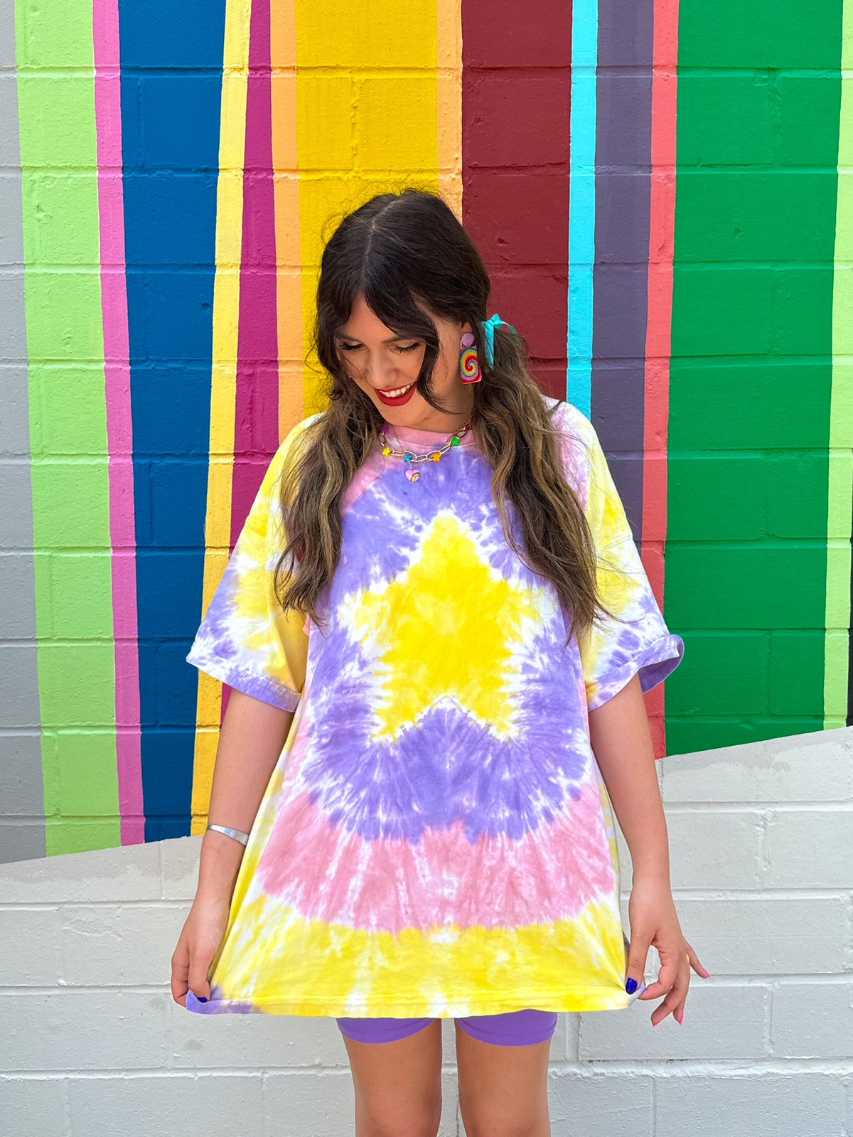 Another super soft oversized tee?! Give us 10!!! This star tie-dye tee is perfection, for casual summer days to nights out with friends!! The pastel color makes it easy to style with a range of colors, from oranges to purples to blues to greens!! Pair with denim shorts or cute skorts!!