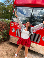 Sparkle and shine in the Summer Sparkle top in white! This top will have you feeling the good vibes all day long with its tank top style, sparkly rhinestones, and bright white color. We paired ours with the Summer Forever skirt in green for a happy summer outfit.