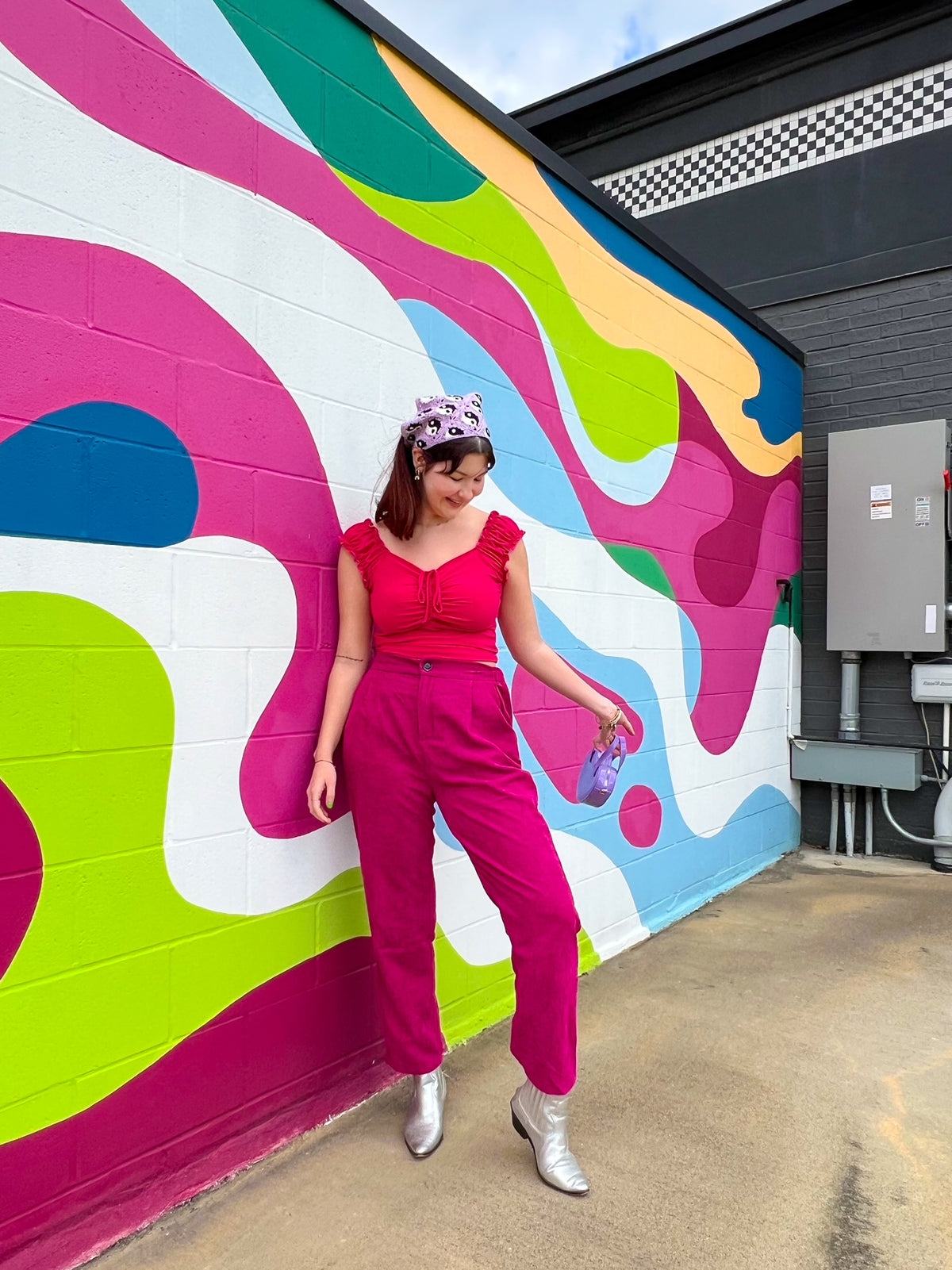 The Theme Park pants are here to amaze. The tapered leg is flattering on all body types, and the fabric is breathable and soft corduroy in a berry color. The classic fit and pockets make these pants a must-have all fall and winter long! Seen paired with the Show Stopper top and the Angel Cake tank in coral.