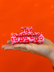One can never have too many hair claw clips- especially floral & colorful ones!! This claw clip is extra sweet for Valentine's Day leading into spring!! Pink and red ALWAYS looks good together, and it is the perfect pop of color for every look!