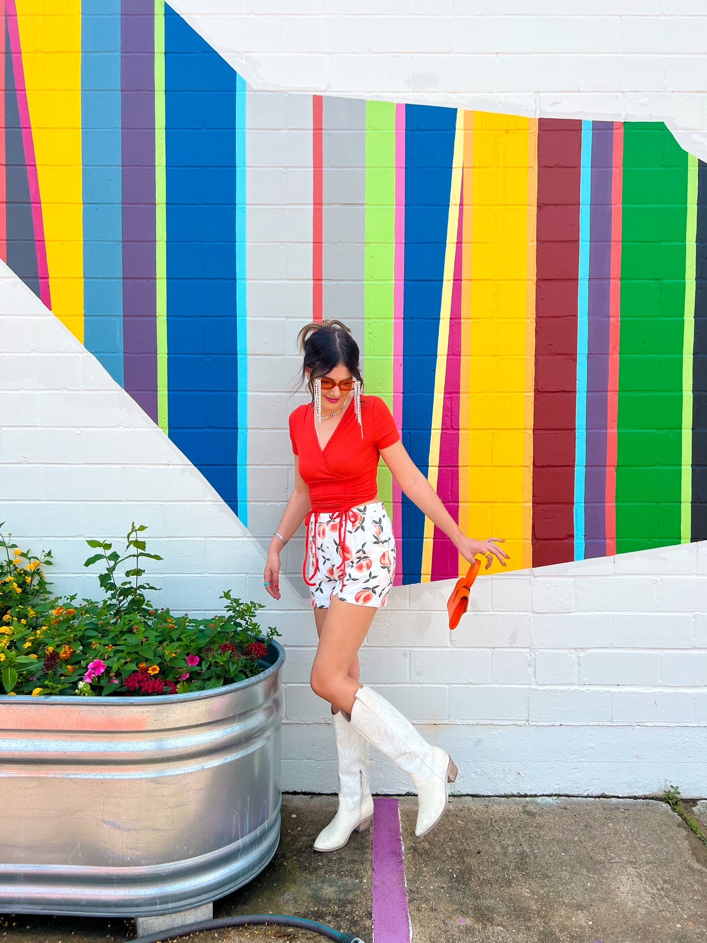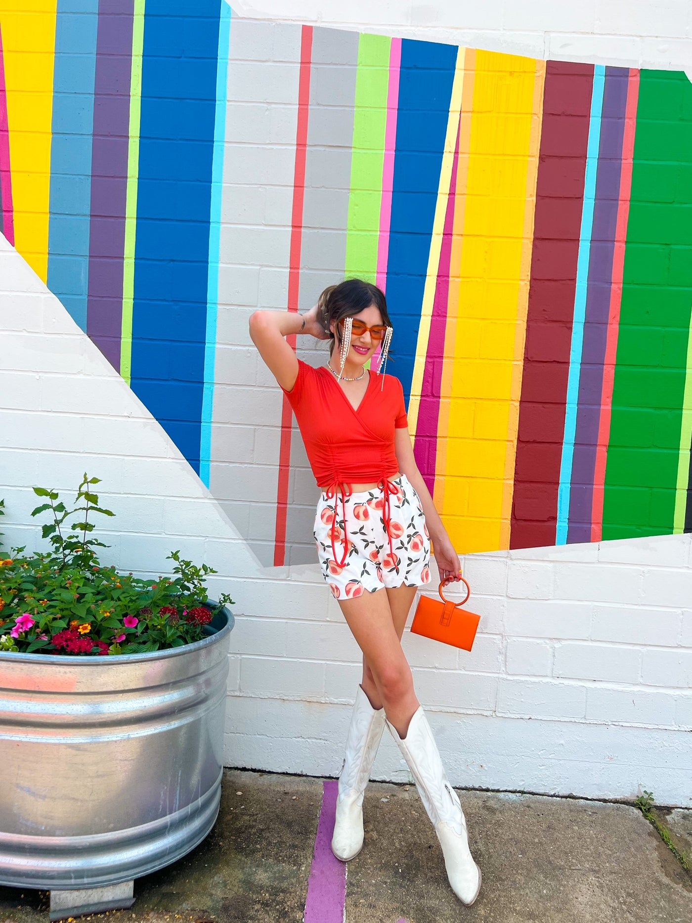Our juicy shorts have the cutest peach print for summer! They have a high waisted and comfortable fit. And the best part? They have pockets!!
