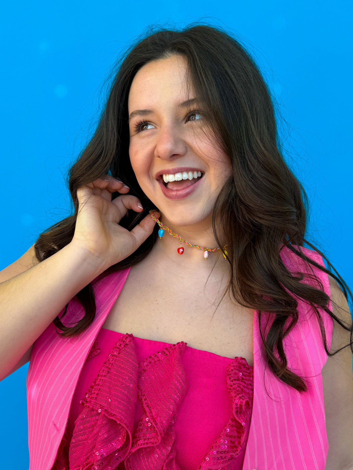 This necklace is as sweet as candy! The rainbow braided chain gives an extra pop of color to the already fun & vibrant hearts!! Truly the perfect accessory for all year round- we all need more love & rainbows!!