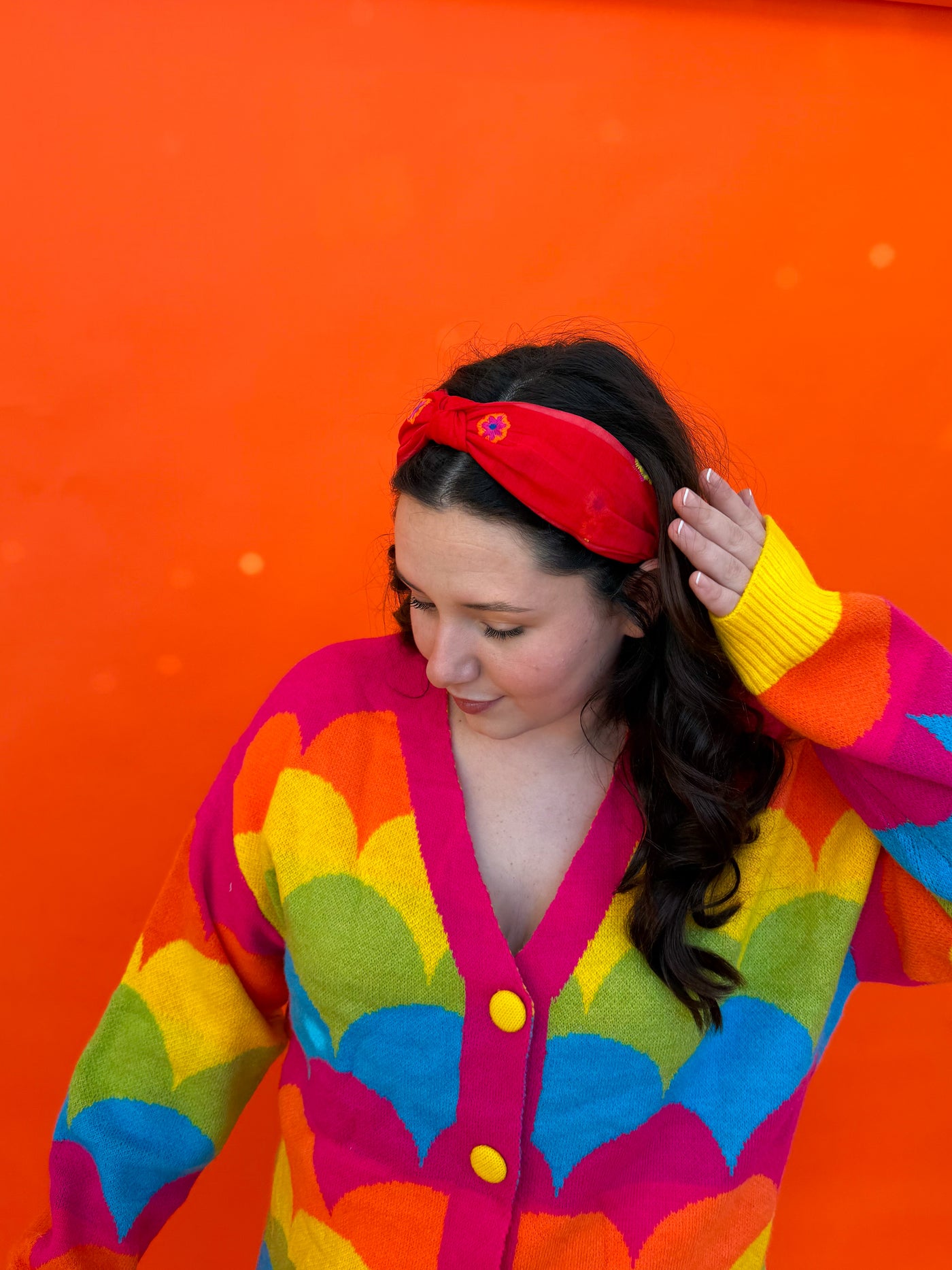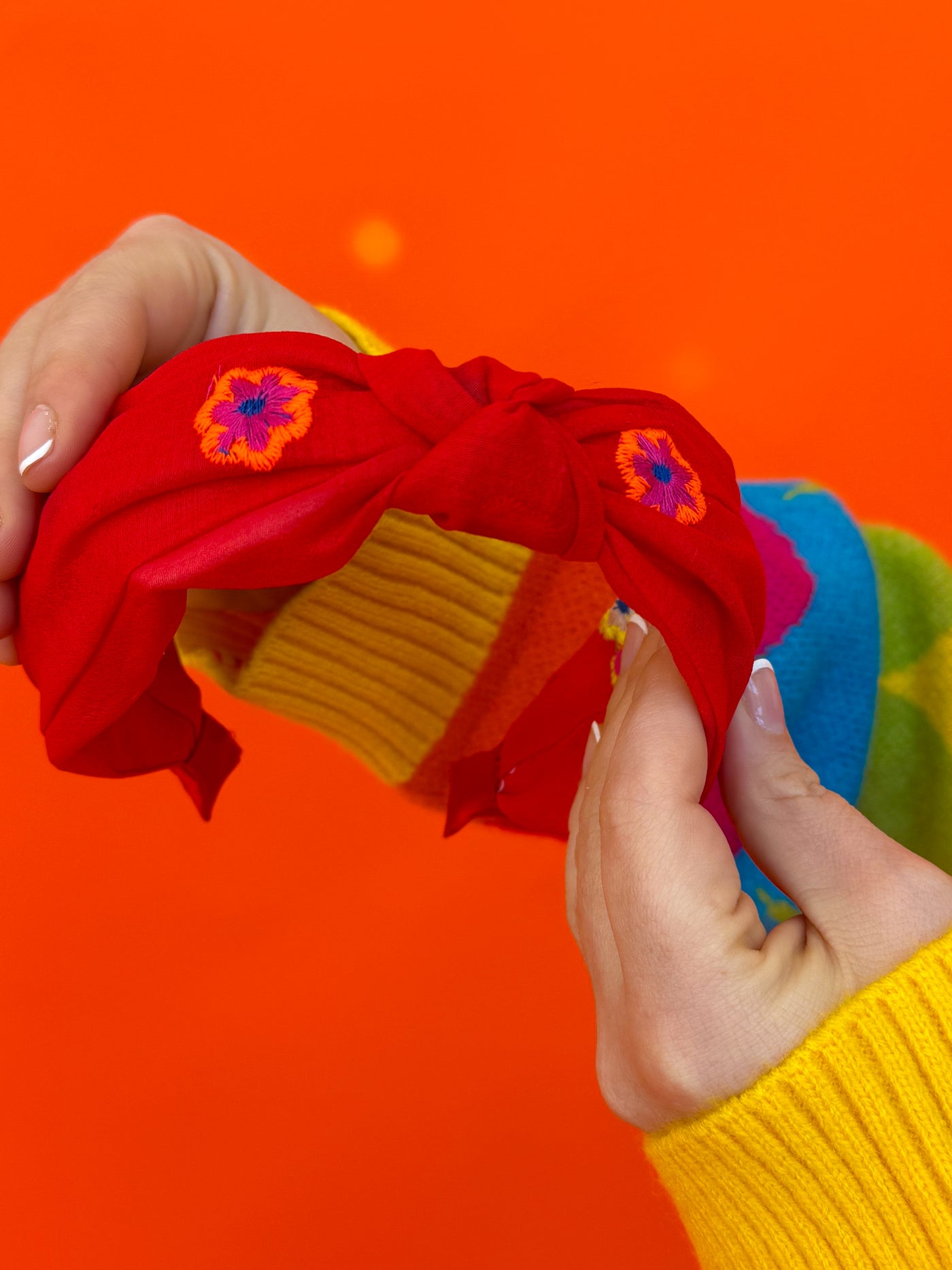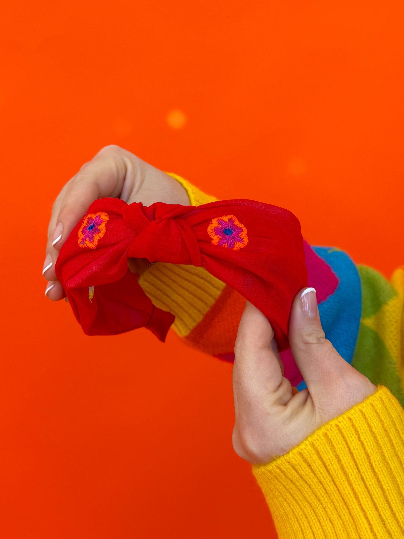 The headband perfect for every season! This red headband has such a fun touch with the embroidered flowers, and the color goes with so much!! Let this be an accessory staple in your collection!!